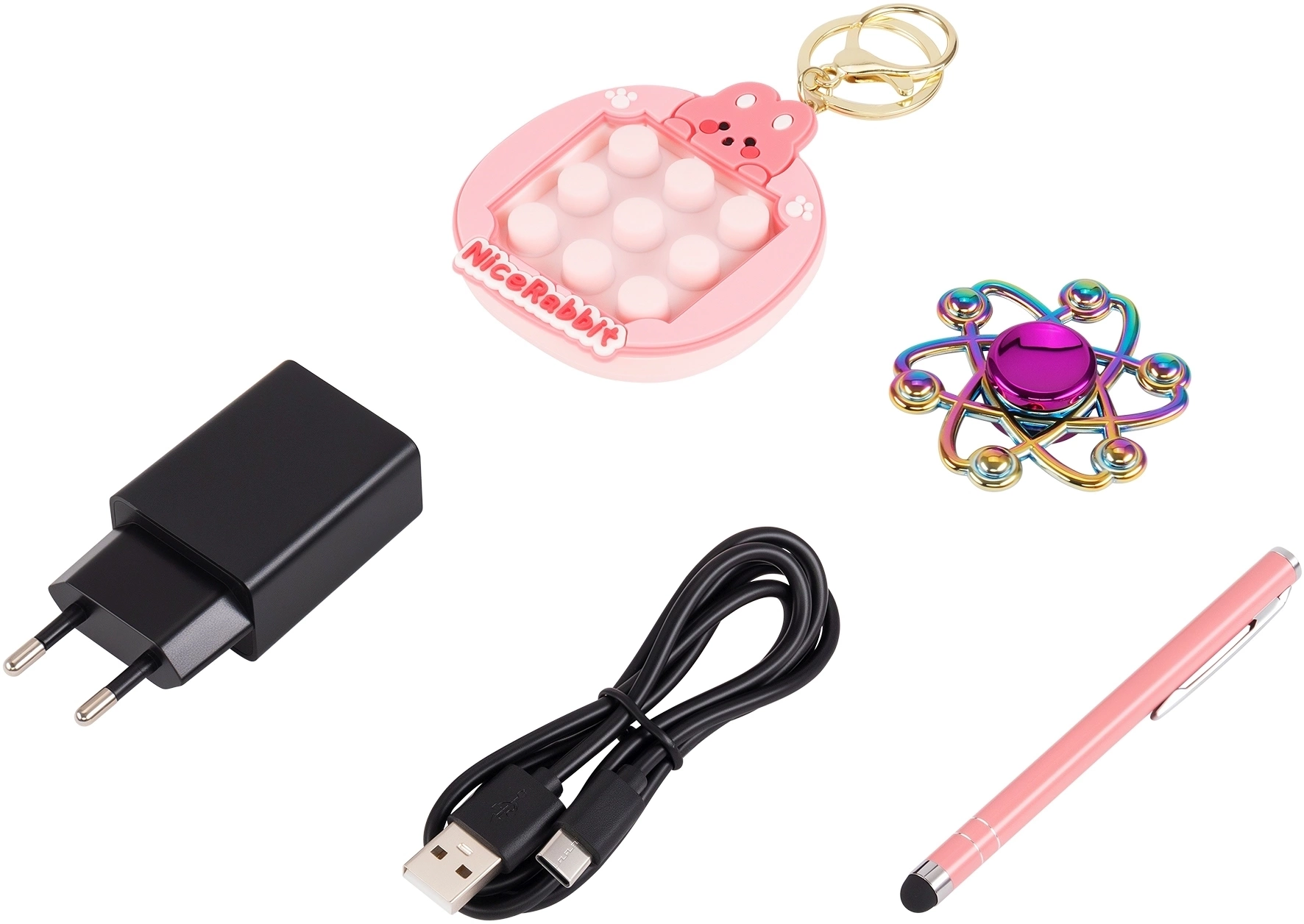 Набор наклеек, поп-ит игрушка и спиннер в комплекте станут хорошей альтернативой для развлечения в период, когда ребенку нужно будет отдохнуть от использования планшета.
