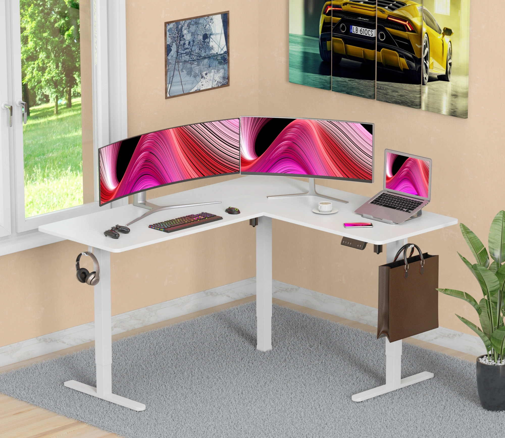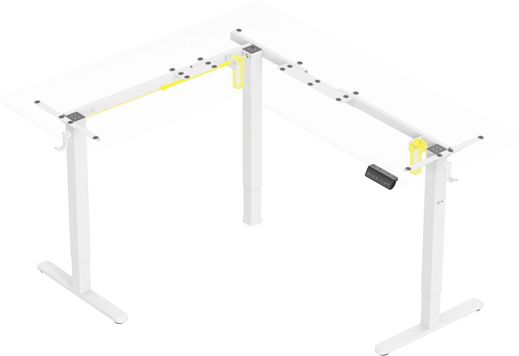 Угловой стол CS-EDXL-WWT – прекрасное решение для организации рабочего пространства. Два моторизированных подъемника и умный пульт управления позволят не только менять стол по высоте, но также запомнят его положение – удобные кнопки быстрого доступа автоматически поднимут или опустят стол на нужный уровень. Уникальной особенностью данной модели является возможность зеркальной сборки – части столешницы можно переставлять в зависимости от индивидуальных нужд и предпочтений. А различные цветовые решения помогут вписать стол в любой интерьер.
