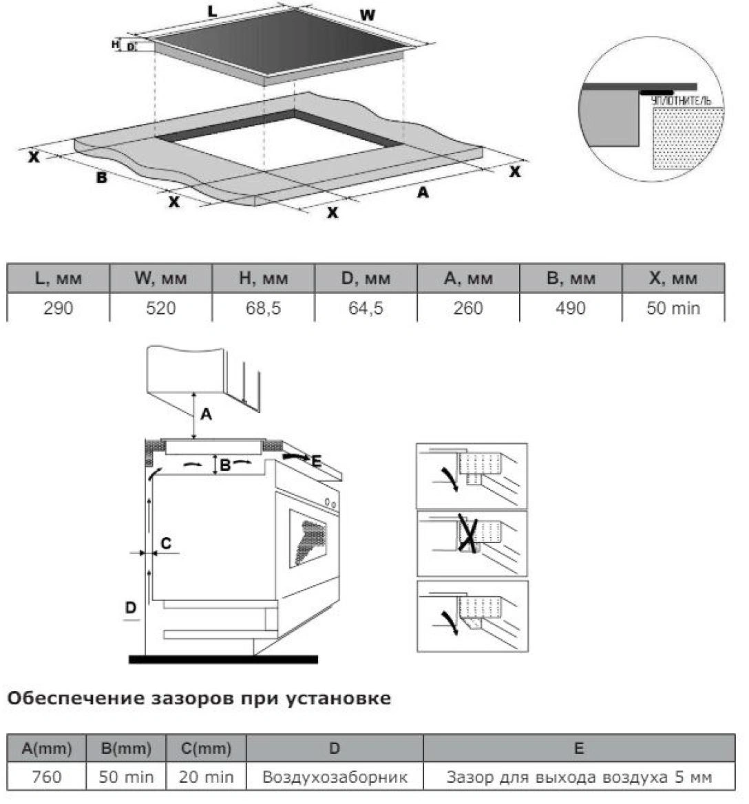 Размеры для встраивания