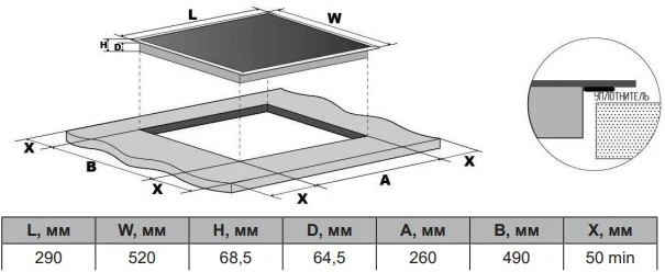 Размеры для встраивания