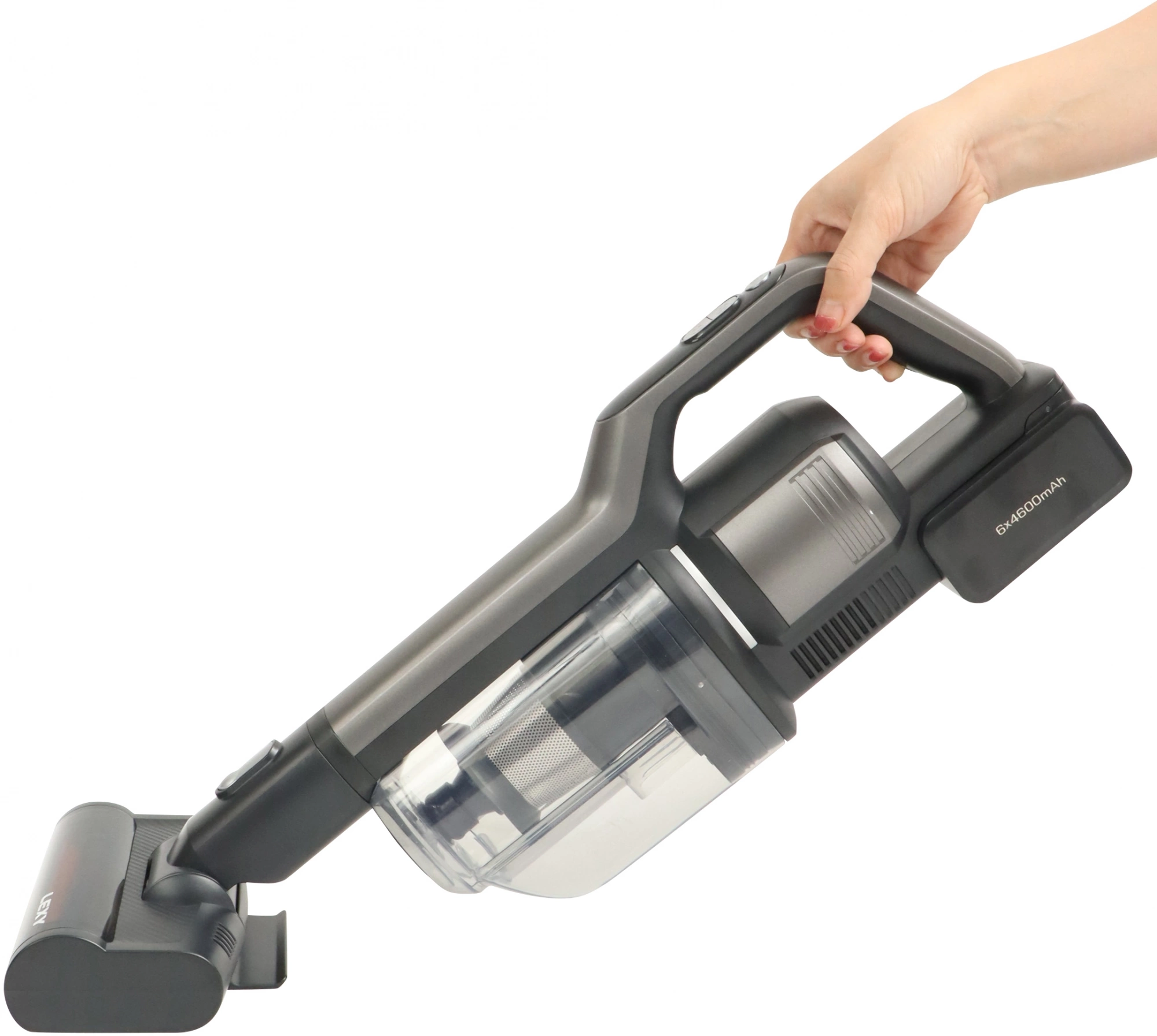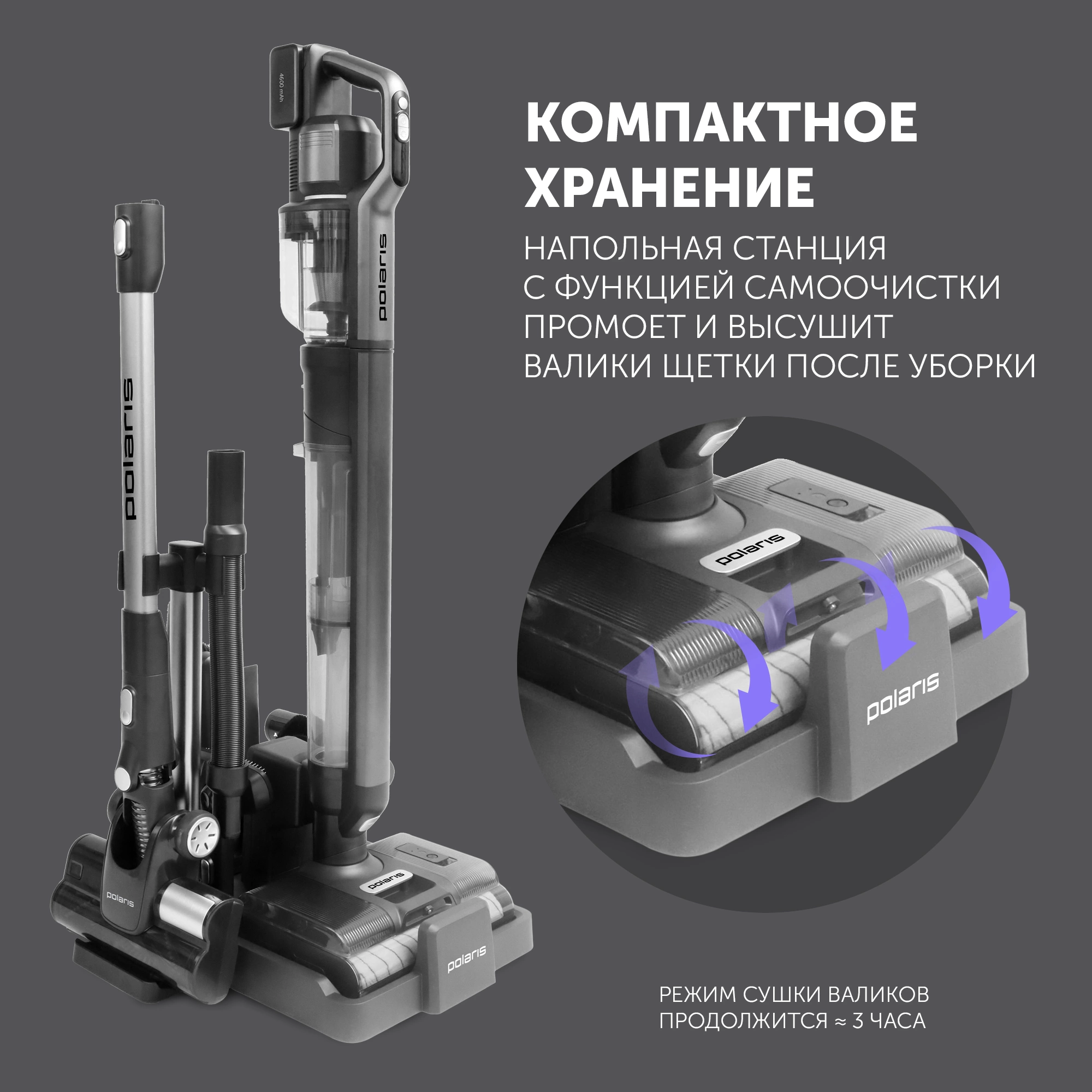 вертикальная парковка, контейнер для насадок, сбор жидкости, регулировка мощности, сухая и влажная уборка, съемный ручной пылесос, индикатор заполнения пылесборника, светодиодный дисплей, сменный аккумулятор в комплекте, сухая и влажная уборка