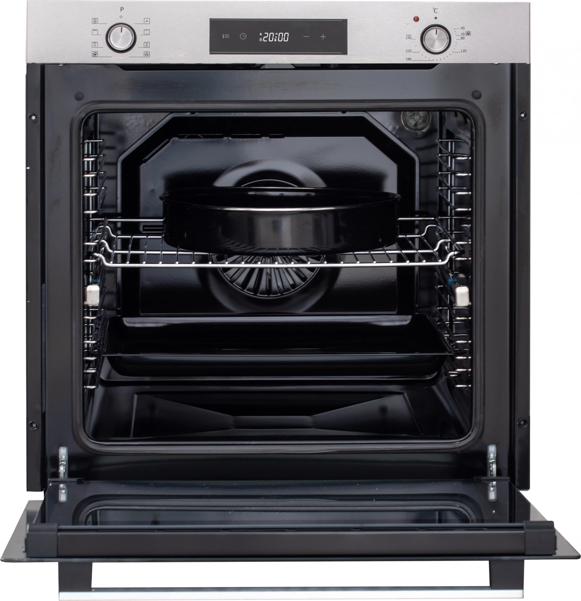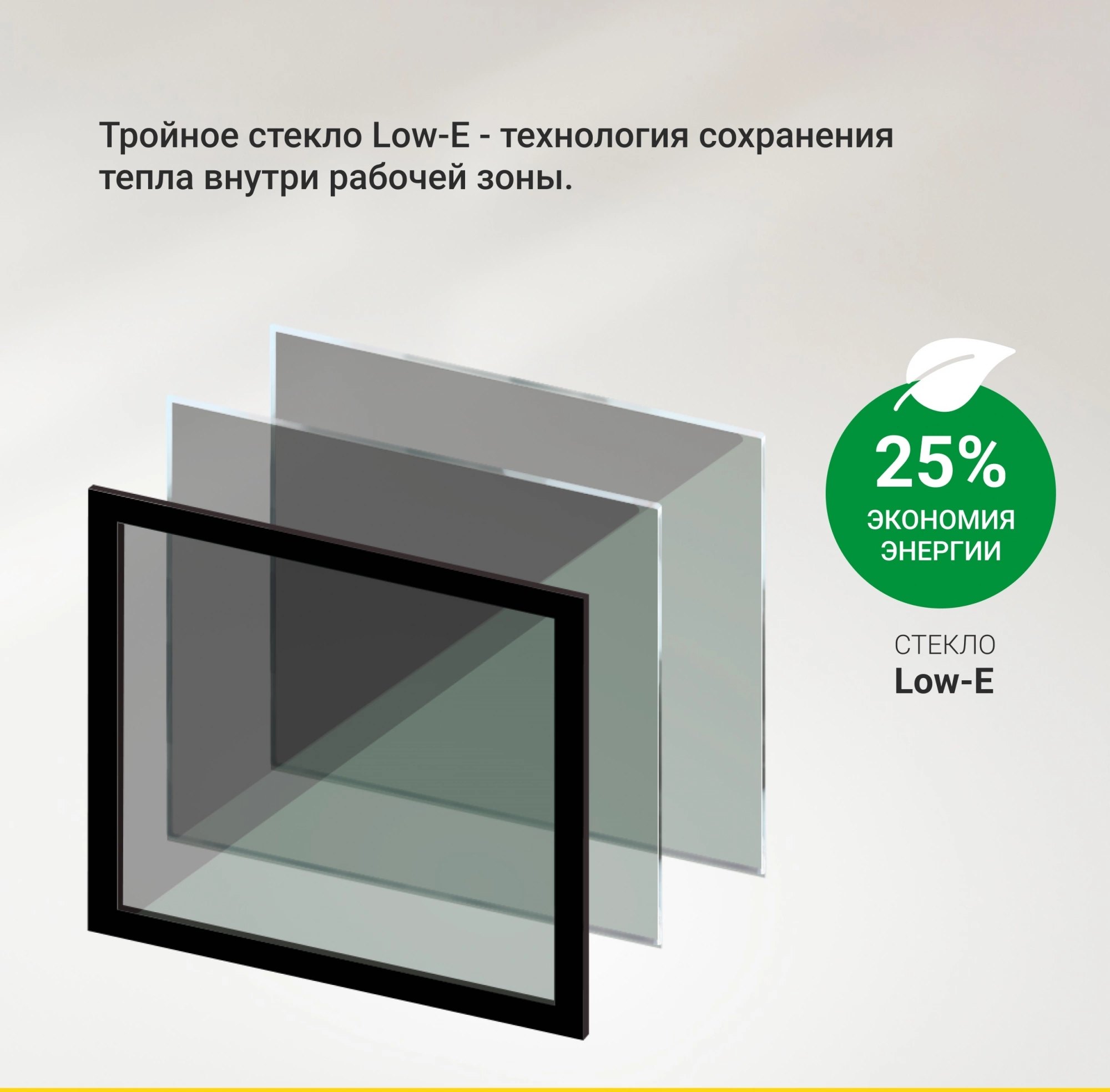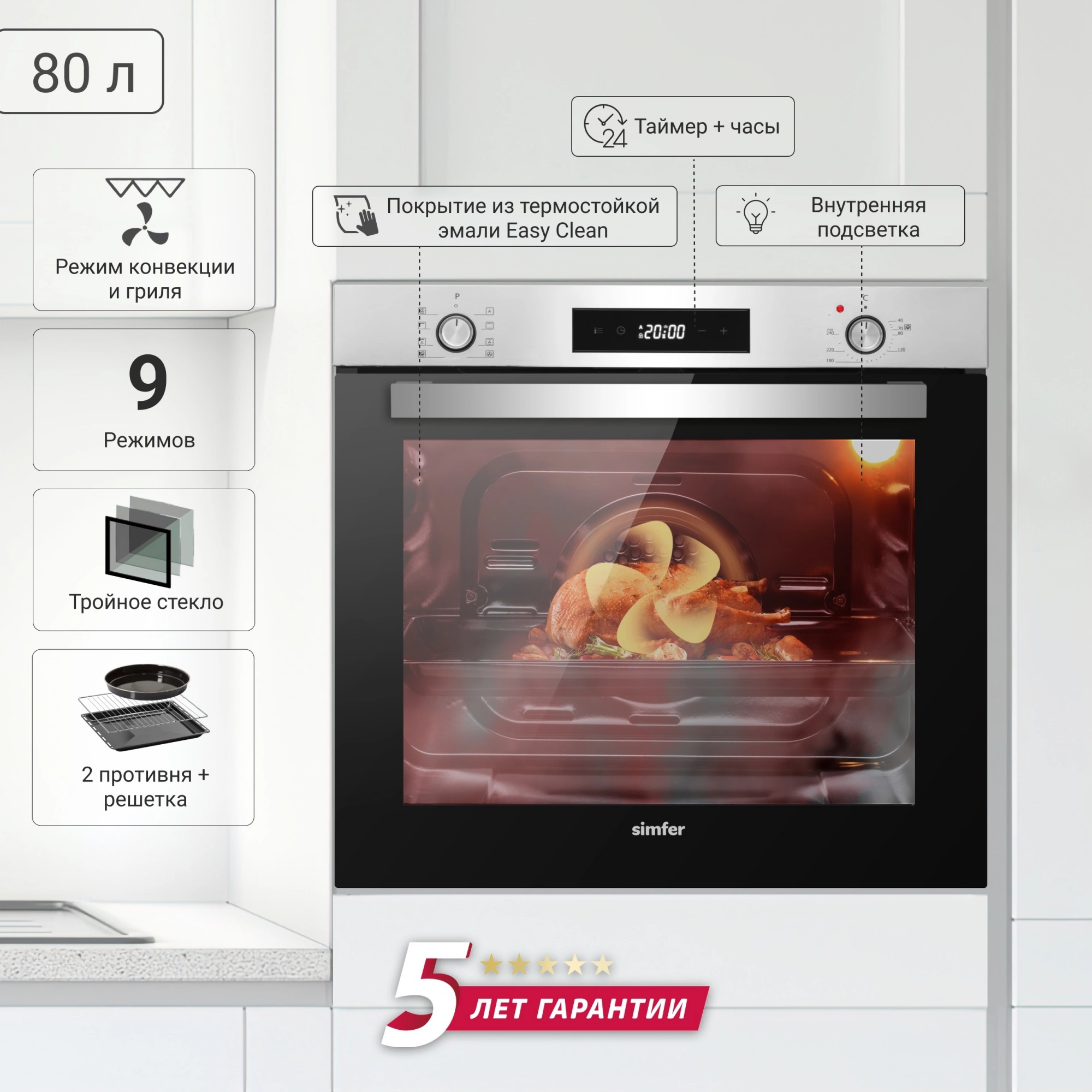 дисплей, полностью стеклянная внутренняя поверхность дверцы духовки, телескопические направляющие, утапливаемые переключатели