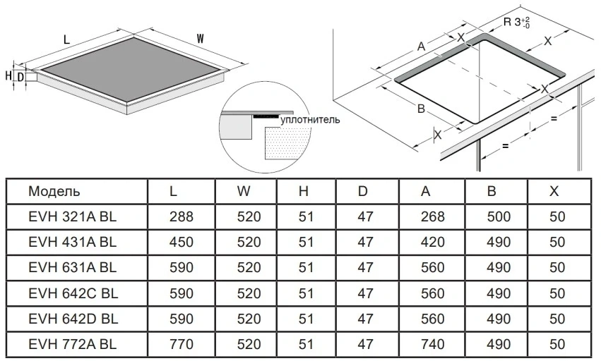 Размеры для встраивания