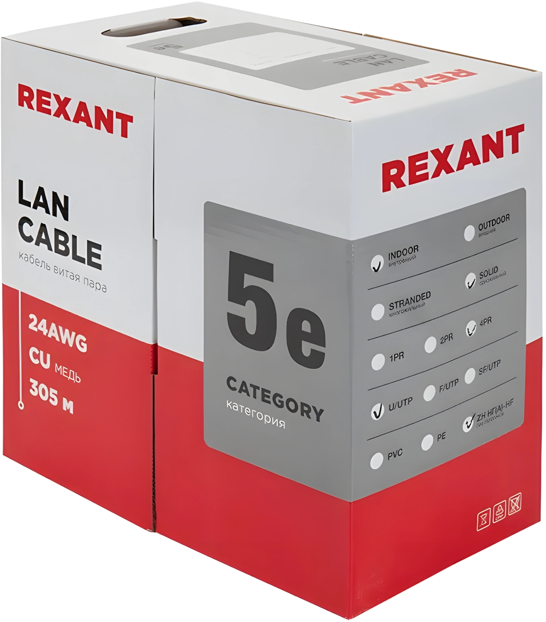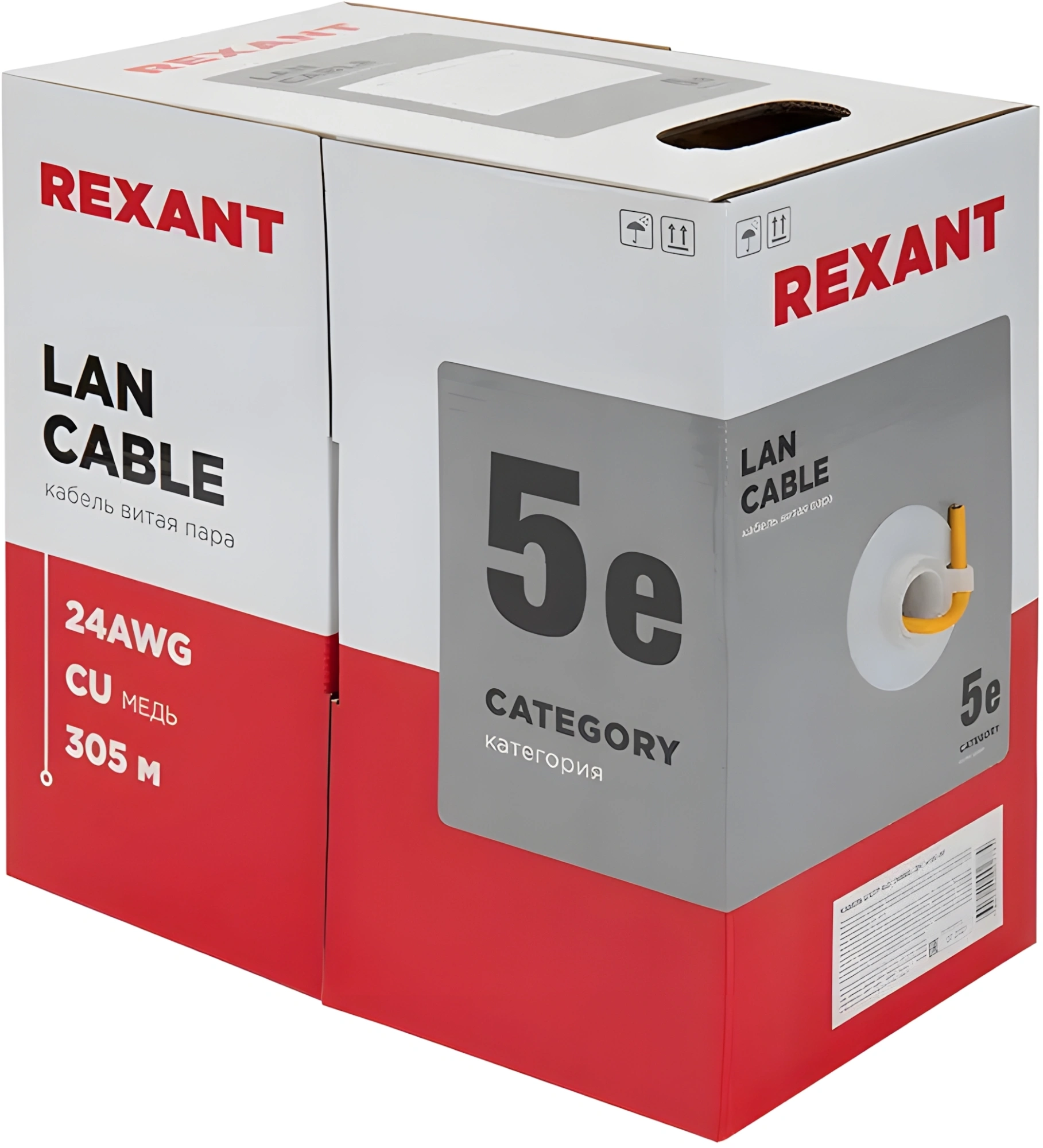 Кабель информационный Rexant 01-0049 кат.5E UTP 4 пары 24AWG LSZH внутренний 305м оранжевый