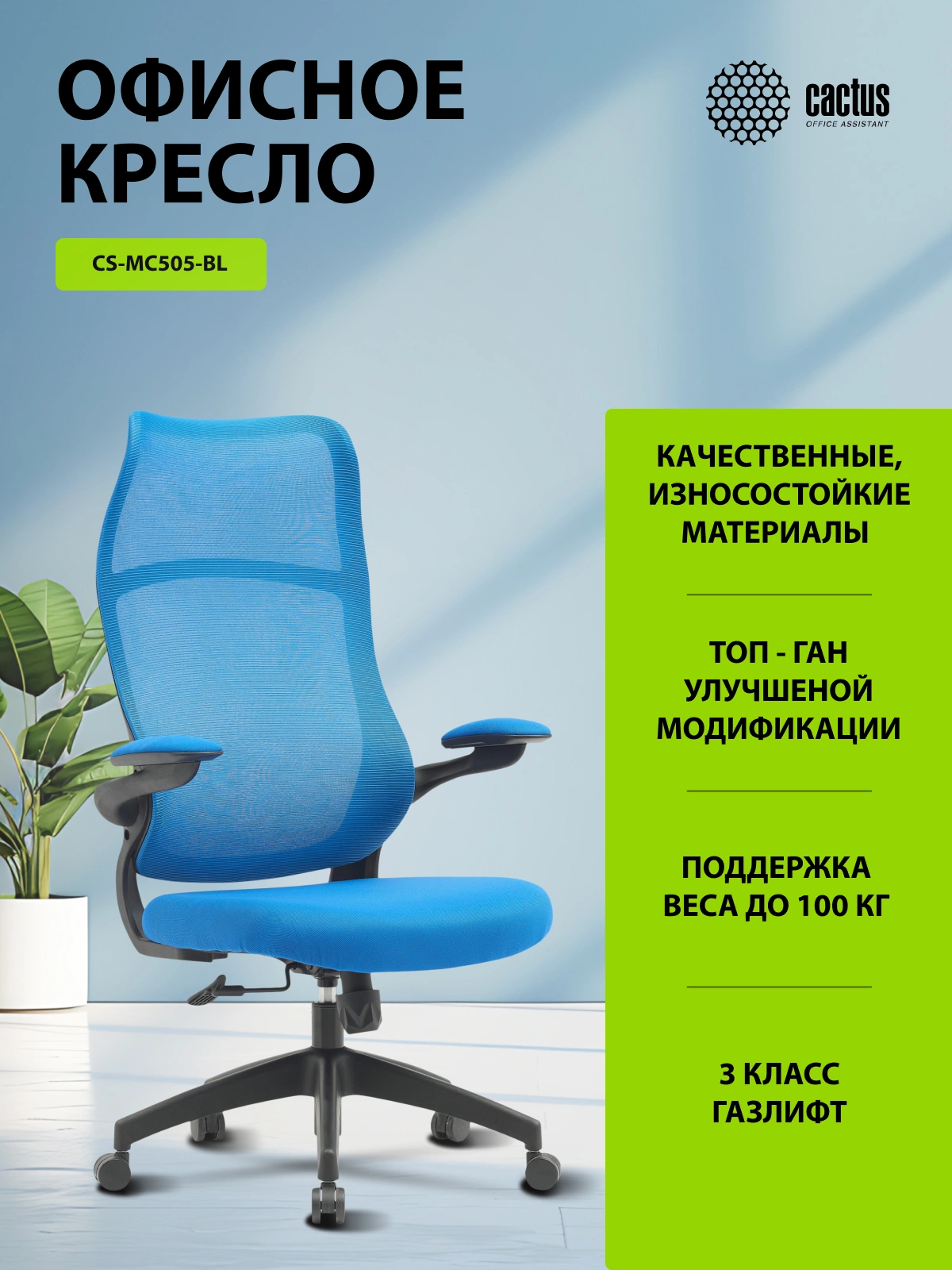 Кресло CS-MC505-BL обладает высокой, изогнутой спинкой из сетчатого материала. Форма спинки обеспечит комфортную поддержку спины на протяжении всего рабочего дня, а сетка позволит креслу «дышать». Черный пластиковый каркас подчёркивает контрастную обивку кресла, тем самым выделяя модель среди прочих. Данная особенность, безусловно, добавит яркости в интерьер как офиса, так и дома.