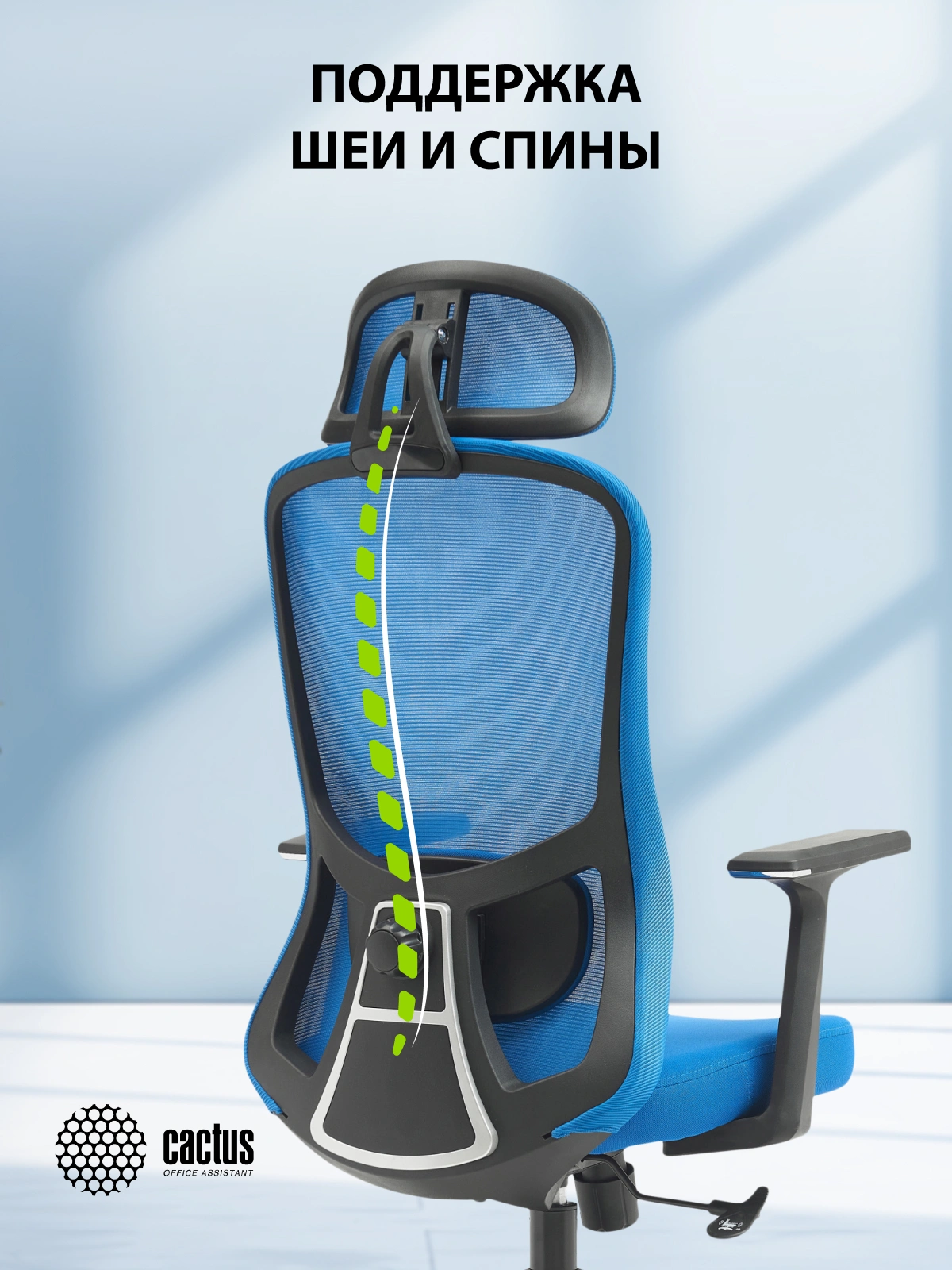 Офисное кресло CS-MC515-BL с высокой, изогнутой спинкой – отличное решение для работы в офисе и дома. Сетчатый материал спинки позволяет креслу «дышать», изогнутая форма обеспечивает поддержку спины, а подголовник и механизм качания дают возможность пользователю откинуть спинку кресла и отдохнуть. Чёрный каркас в комбинации с черной обивкой – это универсальное решение для офиса и дома, а вариант с ярко-голубой обивкой кресла, безусловно, станет ярким акцентом в интерьере. Отличительной особенностью данного кресла является функция поддержки поясницы – с помощью специальной ручки подушку можно зафиксировать в любом удобном положении.