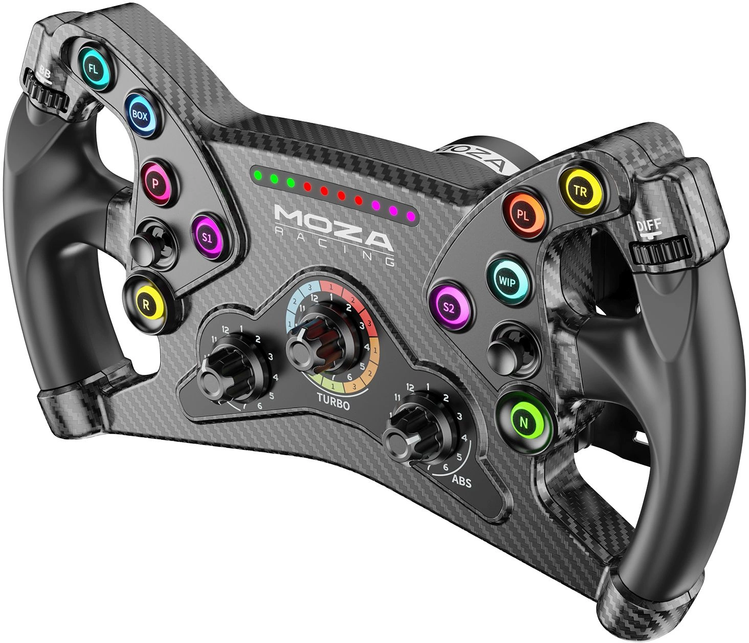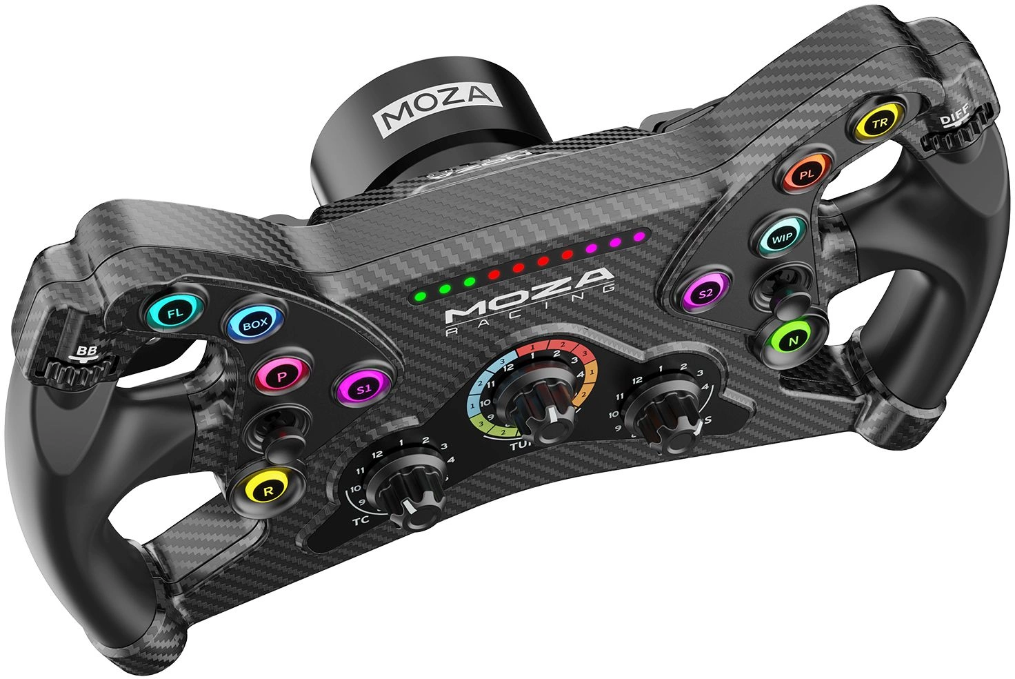 Рулевое колесо оснащено 10 RGB кнопками с 8 цветами и низким ходом, что снижает время отклика и предотвращает случайное нажатие.