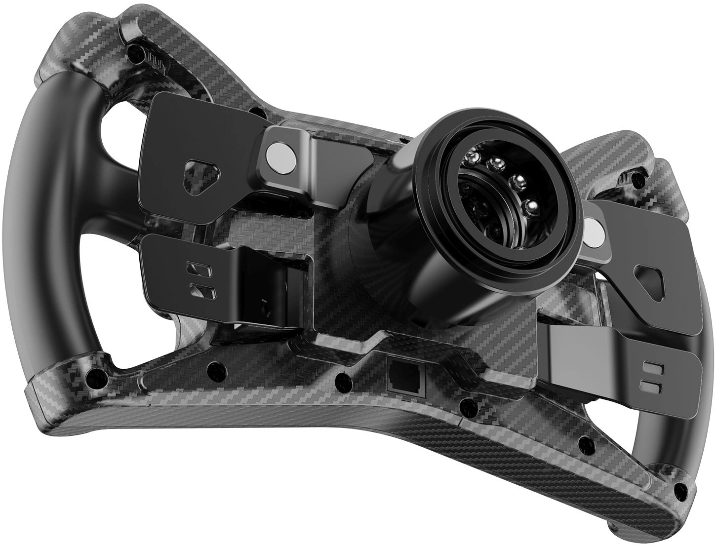 Корпус рулевого колеса выполнен из усиленных углеродным волокном композитов, что делает его особенно прочным, долговечным и приятным на ощупь.