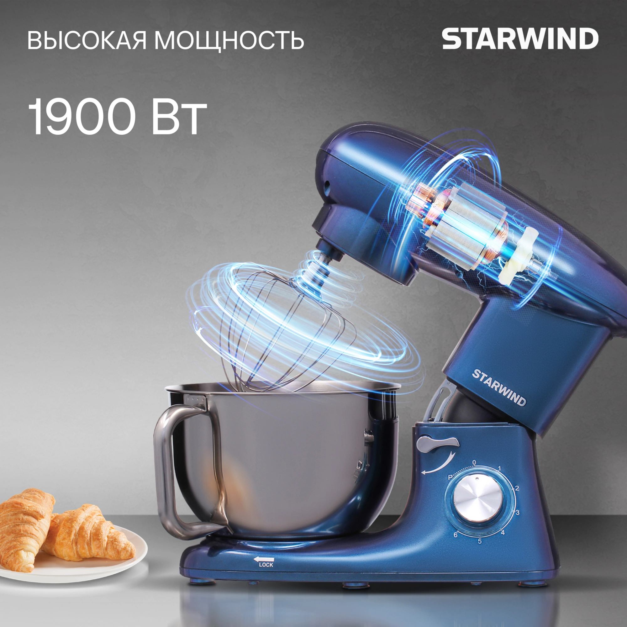 Мощность и надежность: Миксер оснащен мощным двигателем в 1900 Вт, который обеспечивает высокую производительность и долговечность работы. Металлические шестерни редуктора делают его идеальным для смешивания даже густых ингредиентов, таких как тесто для хлеба или печенья.