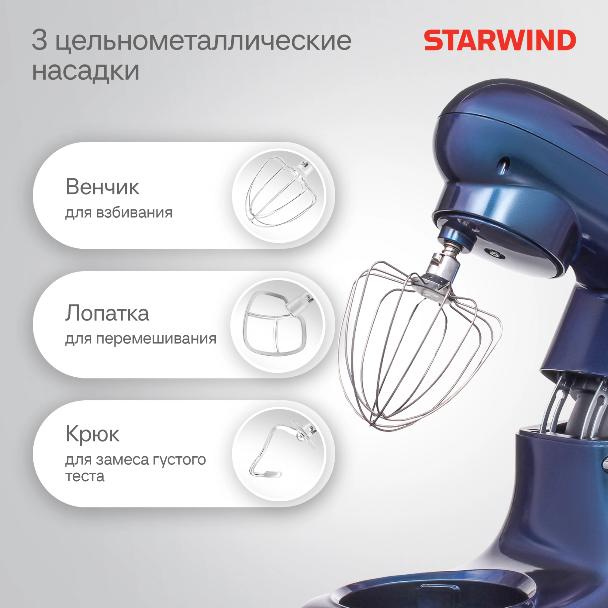 Starwind - лауреат ежегодной национальной премии МАРКА №1 в России 2024 в категории Планетарные миксеры. Этот выбор подтверждает народное доверие, а также качество и надежность продукции Starwind, созданной для вашего удобства и удовольствия в готовке.
