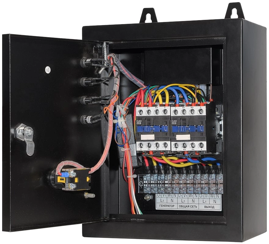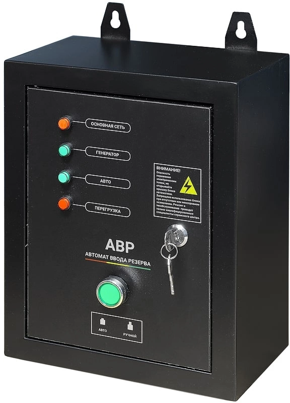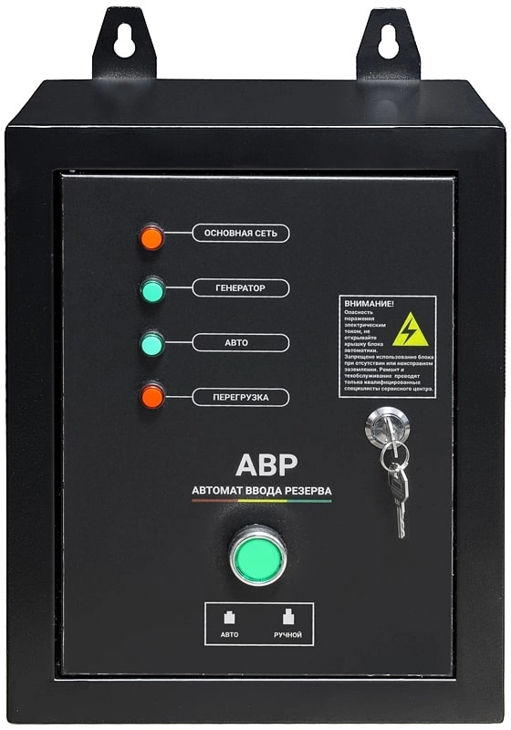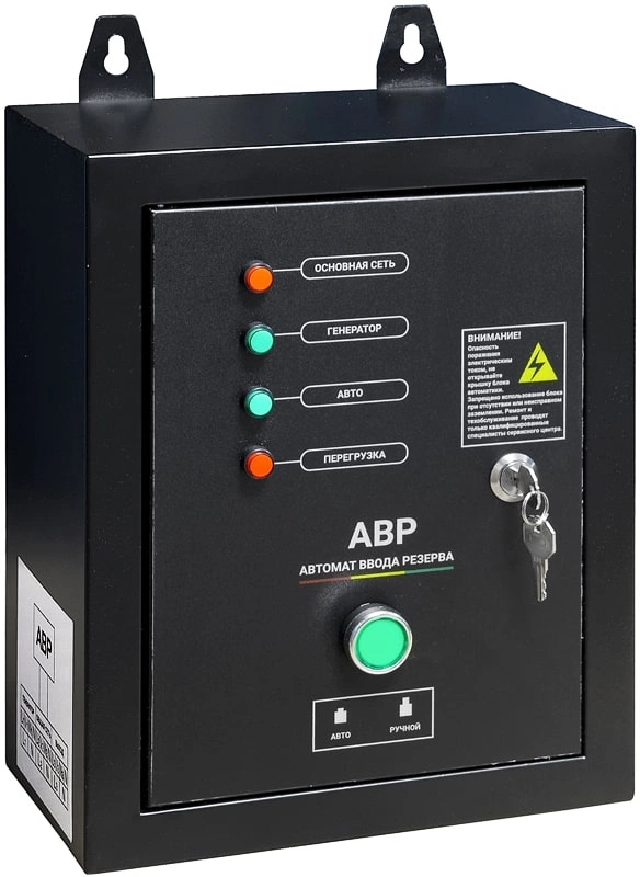 Блок АВР для дизельных генераторов однофазных и трехфазных от 5 до 9 кВт, включает в себя систему автозапуска. При появлении основного источника электропитания происходит отключение электростанции. Блок автоматического управления для контроля наличия напряжения в сети.