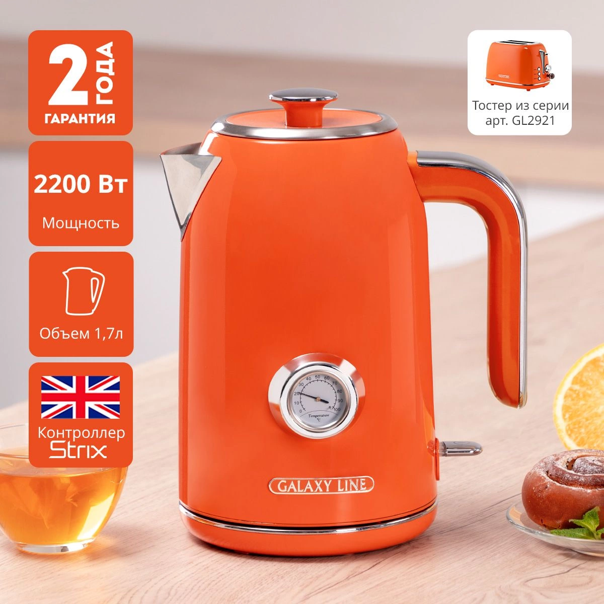1.7л. 2200Вт оранжевый корпус: нерж.сталь (ГЛ0351Л...