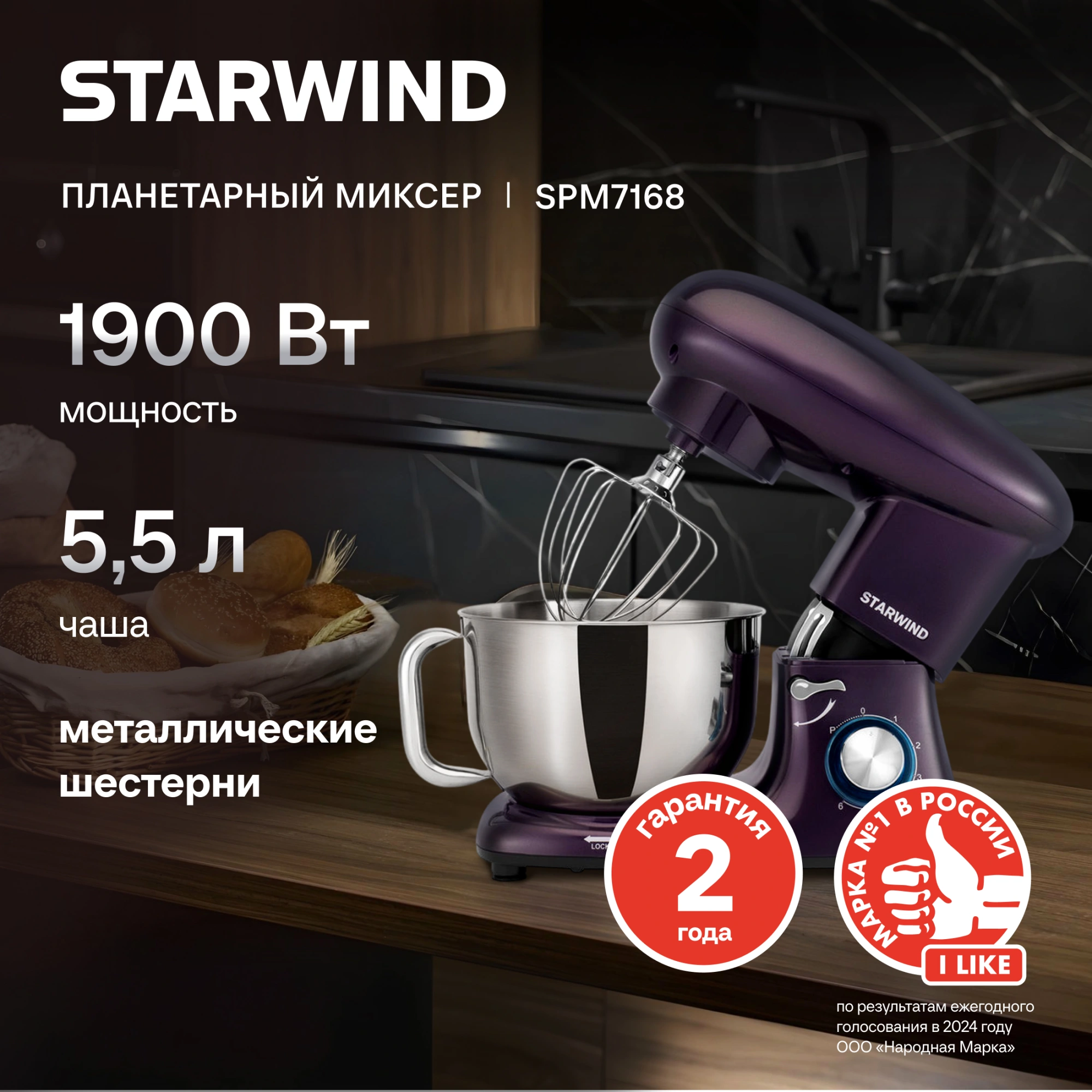 Планетарный миксер Starwind SPM7168 — это универсальный прибор, который подходит как для опытных кулинаров, так и для тех, кто делает первые шаги в кулинарии. Его высокая мощность, надежность и удобство в использовании позволят вам наслаждаться процессом приготовления и добиваться идеальных результатов. Подарите себе удовольствие от готовки — закажите Starwind SPM7168 прямо сейчас!