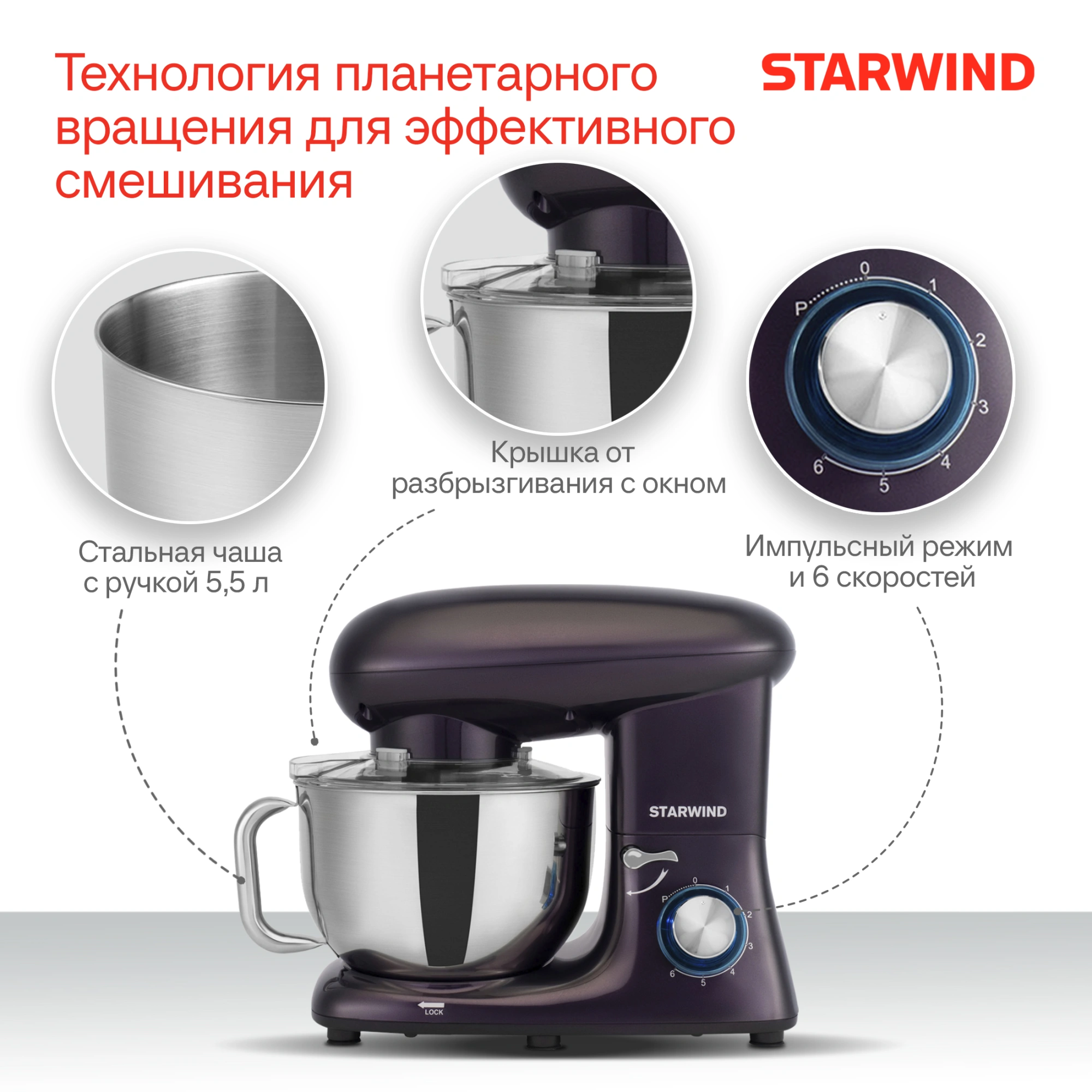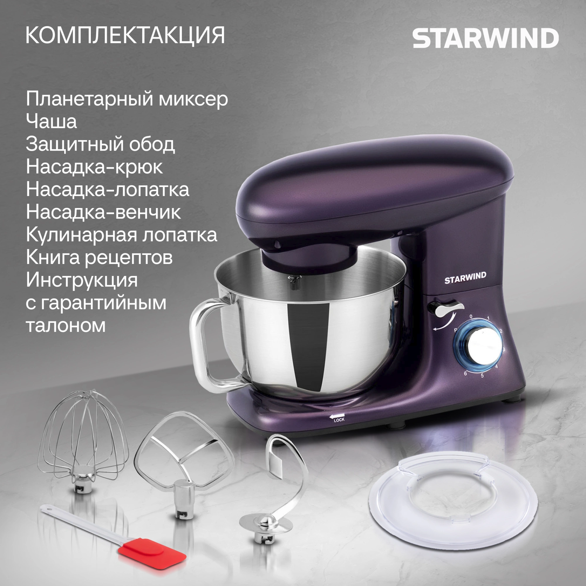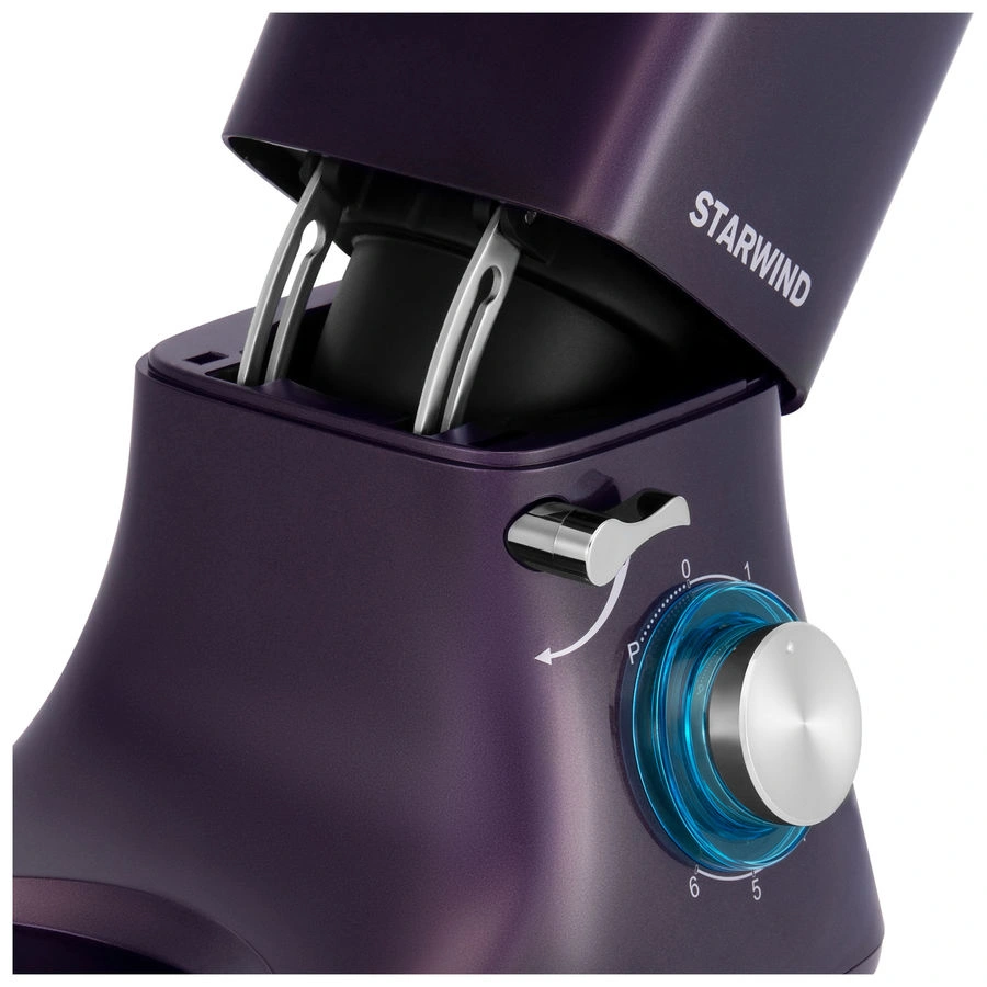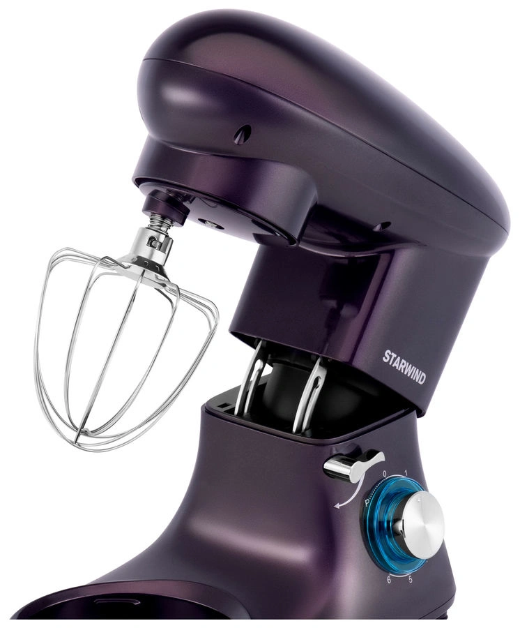 Планетарный миксер Starwind SPM7168 в оттенке ежевики — это стильный прибор с насыщенным темно-фиолетовым цветом, который привнесет роскошь и оригинальность в интерьер вашей кухни.