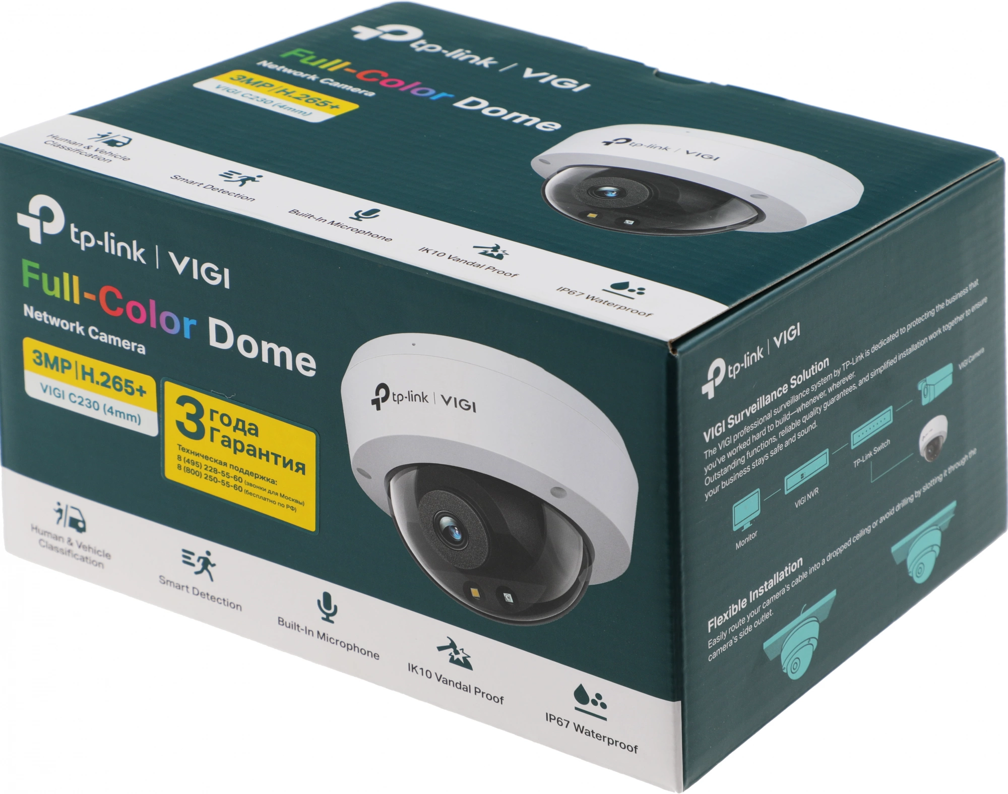Защищённый корпус: степень защиты IK10 позволяет корпусу выдерживать сильные удары, а степень защиты IP67 позволяет избежать проникновения влаги и пыли, благодаря чему камеру можно использовать в самых беспощадных условиях.