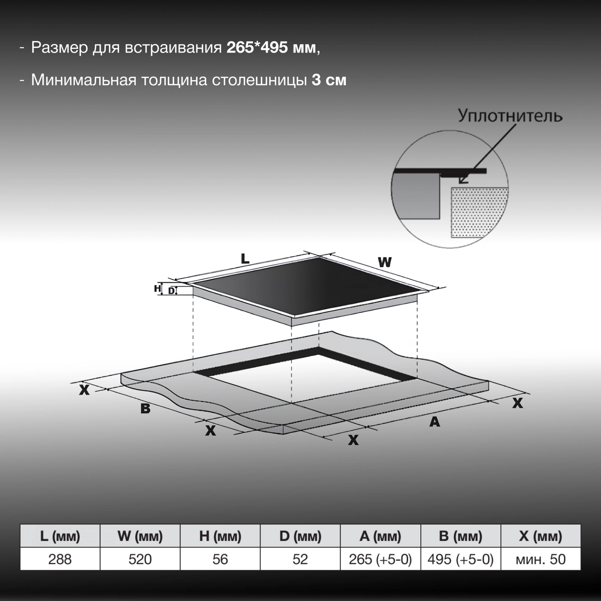 блокировка управления (защита от детей), защитное отключение, распознавание наличия посуды