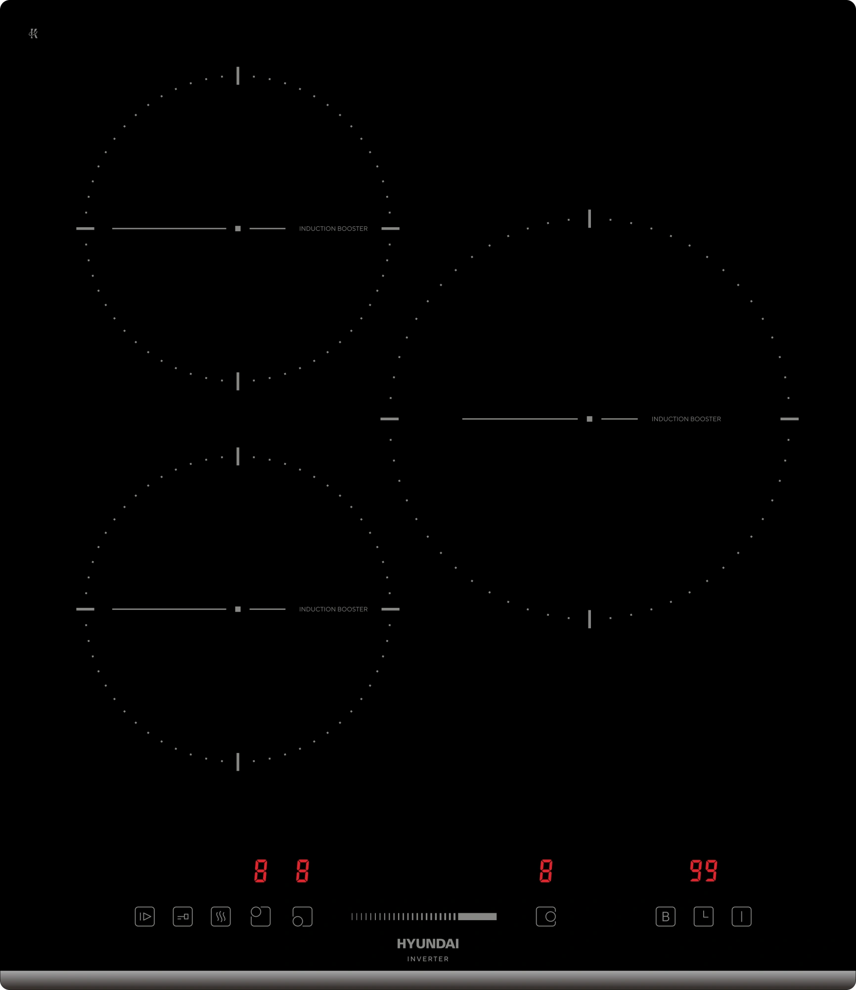 блокировка управления (защита от детей), защитное отключение, распознавание наличия посуды