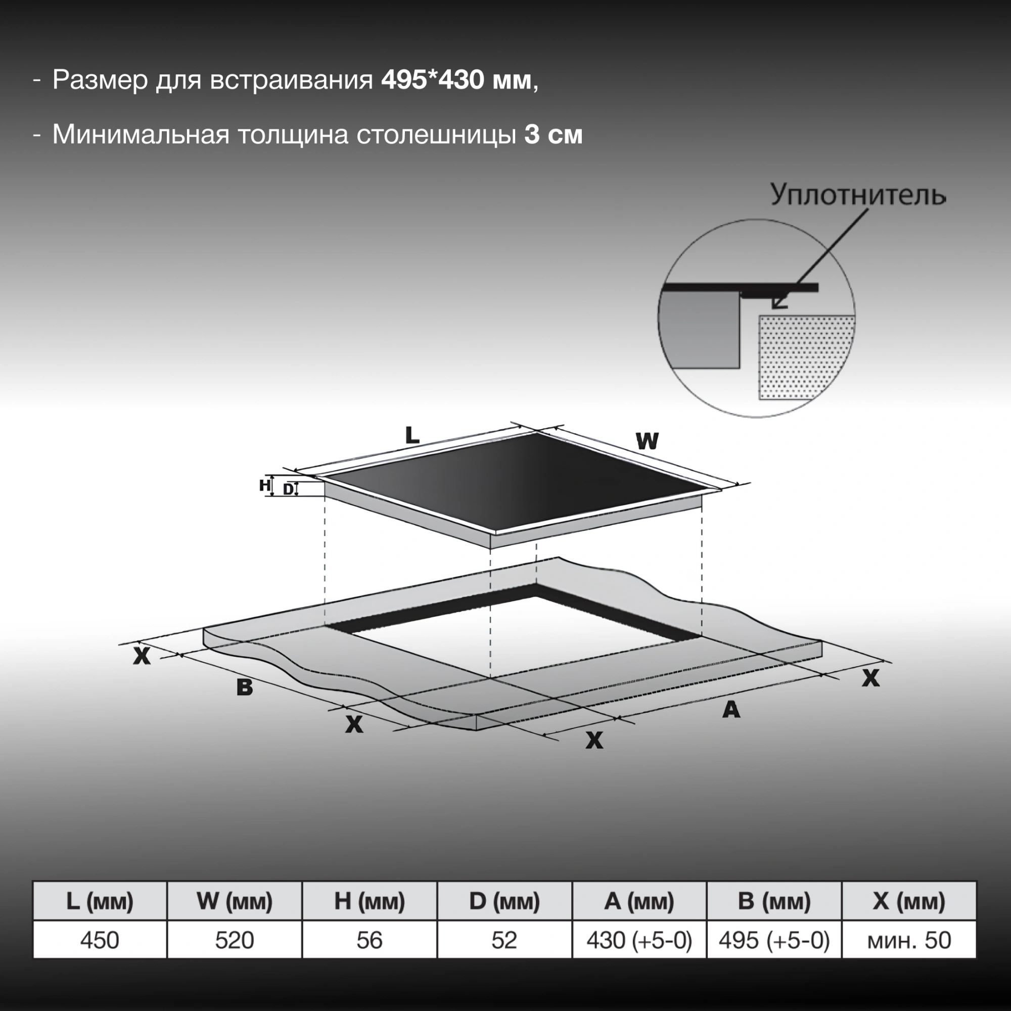 Размеры для встраивания