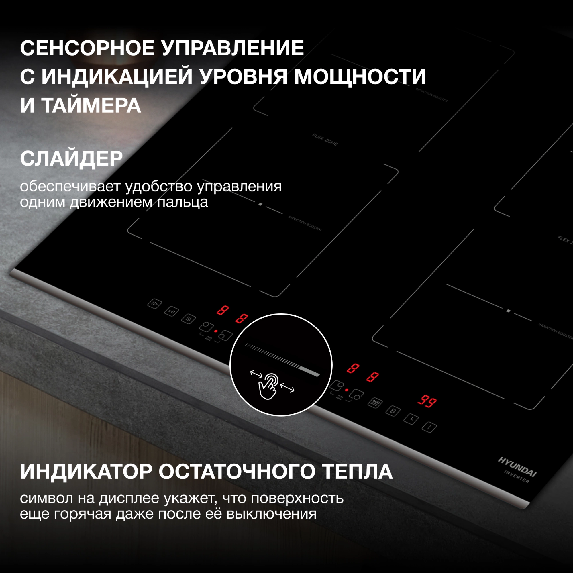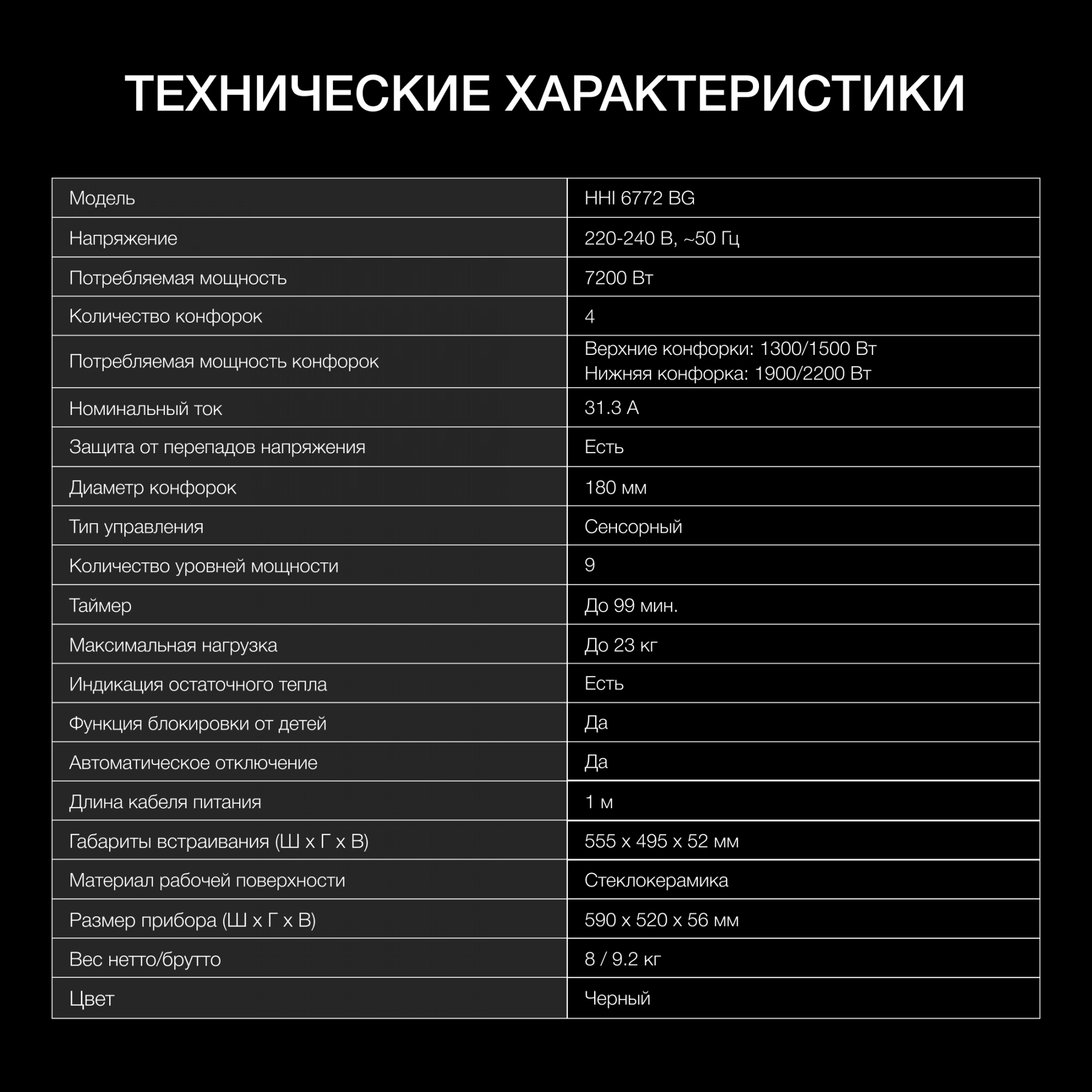 блокировка управления (защита от детей), защитное отключение, распознавание наличия посуды