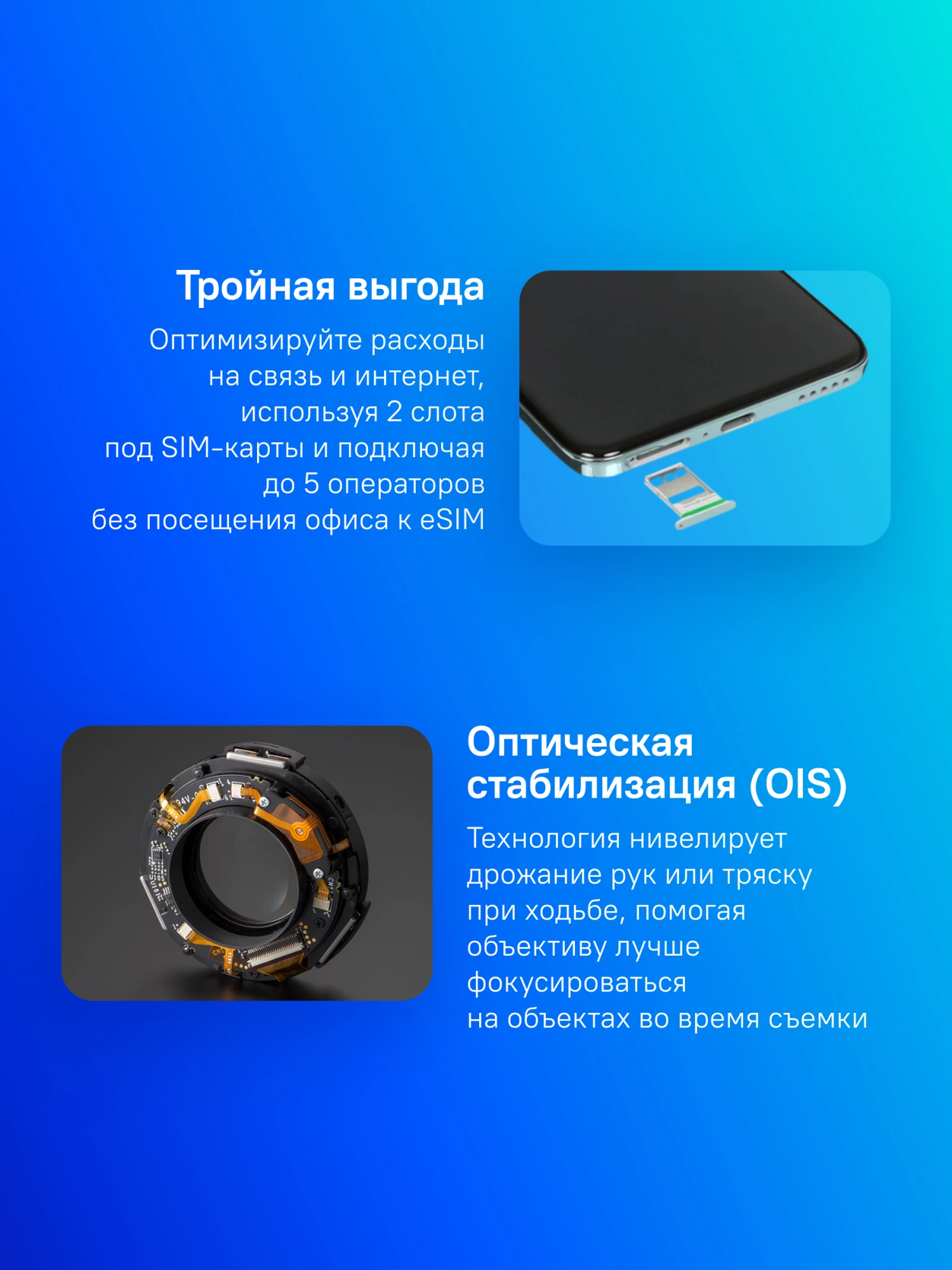 Пользователь может использовать до двух физических SIM-карт или 1eSIM и 1 физическую SIM-карту одновременно