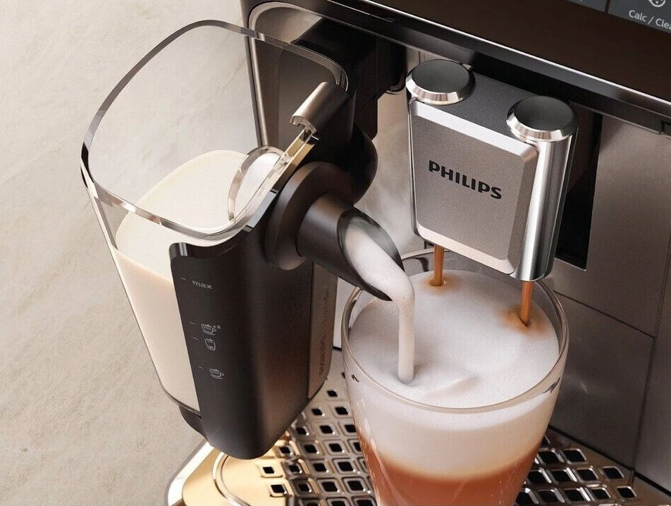 Готовьте 6 разных вариаций горячего кофе одним касанием кнопки. LatteGo автоматически подготовит шелковую молочную пену для разновидностей кофе с молоком — систему очень легко настроить, а ее очистка занимает всего 10 секунд