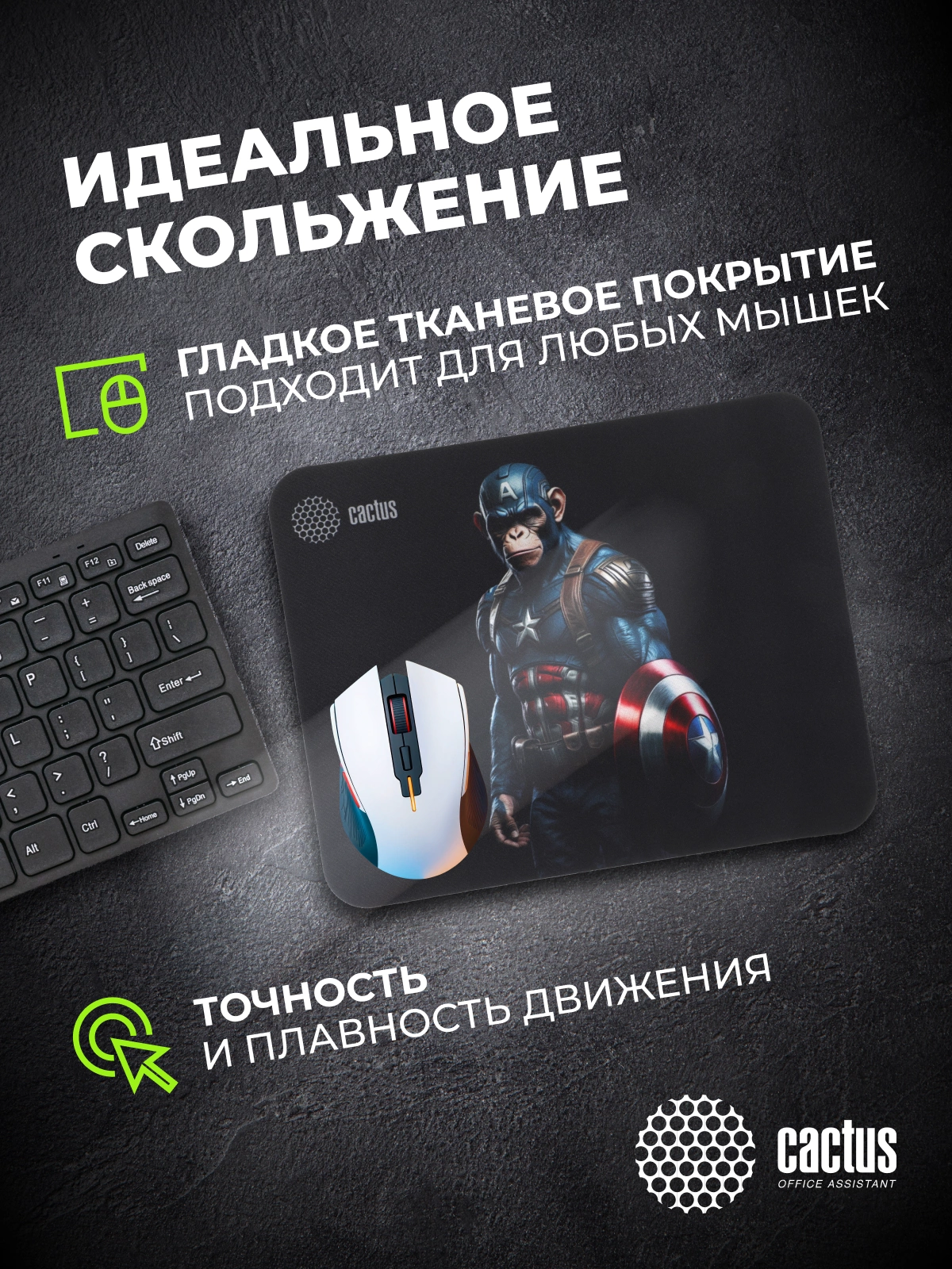 Коврик для мыши Cactus идеально подойдёт фанатам логических головоломок, квестов и стратегий. Он также будет полезен и пользователям офисных программ и графических редакторов, помогая более полно взаимодействовать с компьютерной мышью и точно позиционировать курсор.