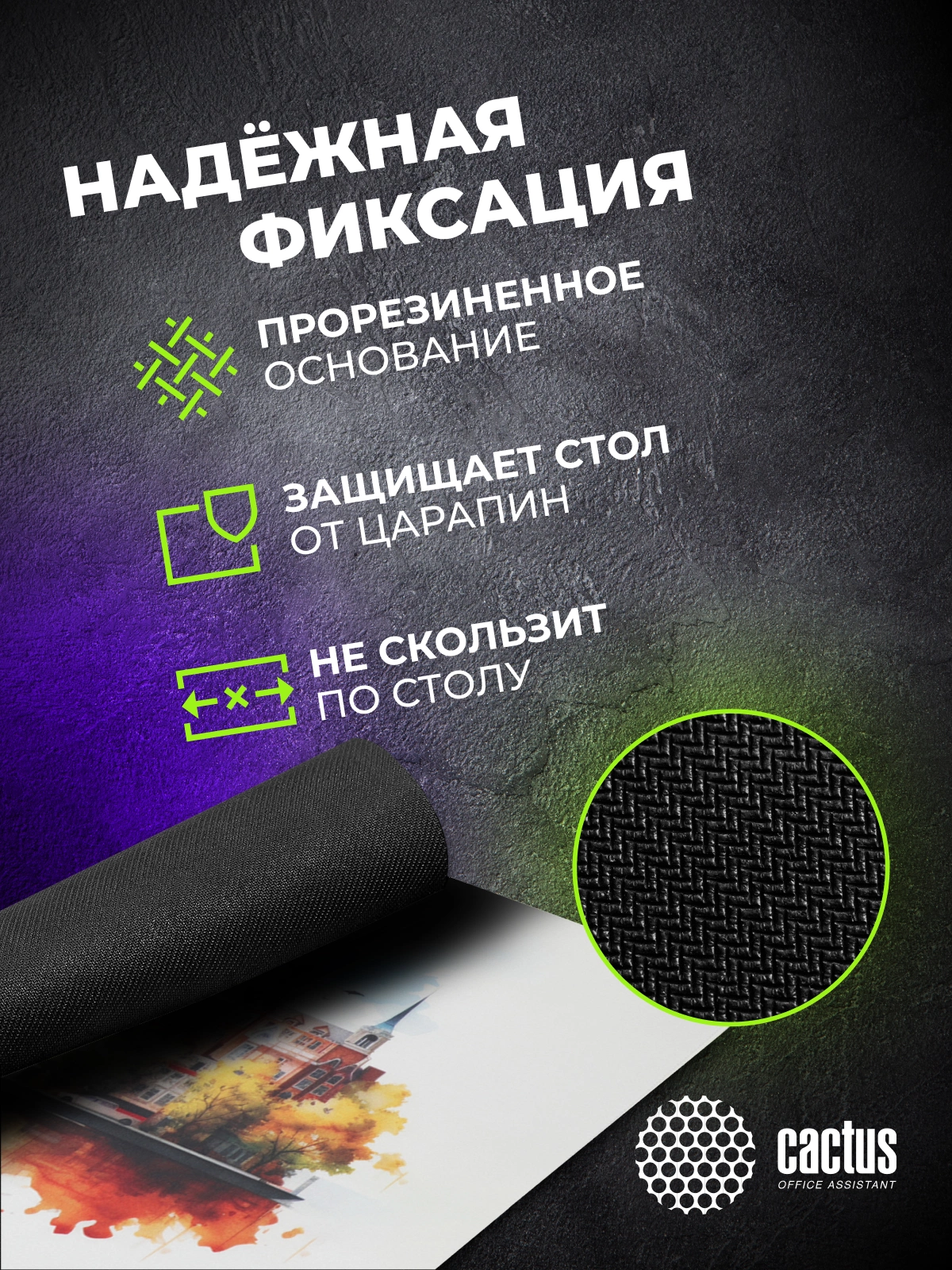 Коврик для мыши Cactus серии Professional предназначен в первую очередь для профессиональных геймеров. Большой размер коврика 900х400мм позволяет расположить на нём не только мышку, но и полноразмерную клавиатуру, предотвращая и её скольжение по рабочему столу, что обеспечивает ещё больший комфорт во время игрового процесса. Размера ковра хватит на все ваши действия! И не нужно больше думать о том, что коврик может неожиданно закончиться и сенсор мыши соскользнёт и не считается.