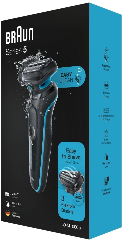 Электробритва с 3 плавающими лезвиями, которые адаптируются к контурам лица для легкого бритья. Система EasyClean обеспечивает быструю и простую очистку без снятия бритвенной головки
