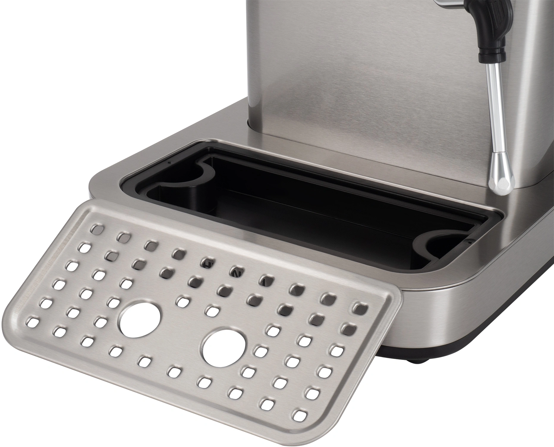 дисплей, капучинатор, манометр, панель для подогрева чашек, съемный дренажный отсек для капель, съемный поддон для капель, съемный резервуар для воды