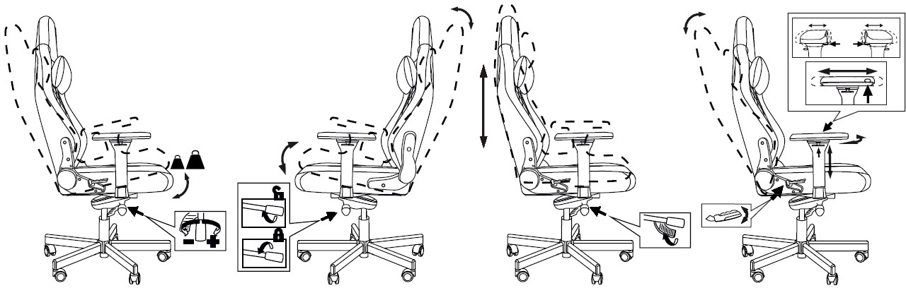 Регулировка угла наклона спинки(реклайнер 90-150 градусов)