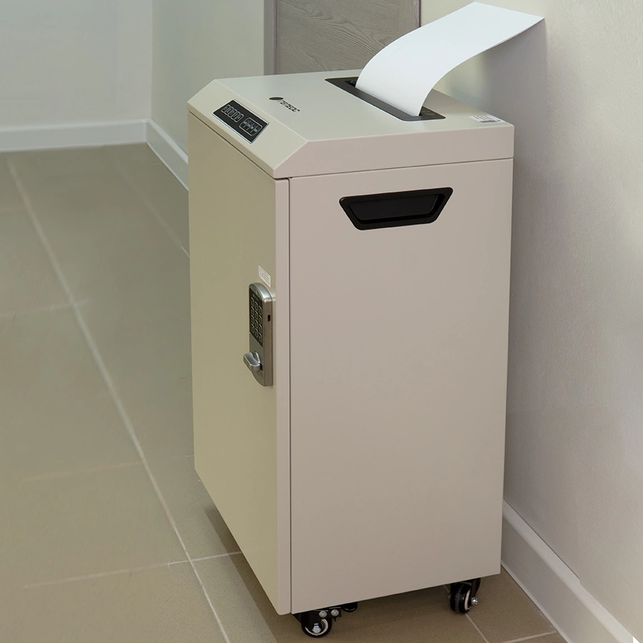 С кодовым замком ограничения доступа к уничтоженнным фрагментам документов.