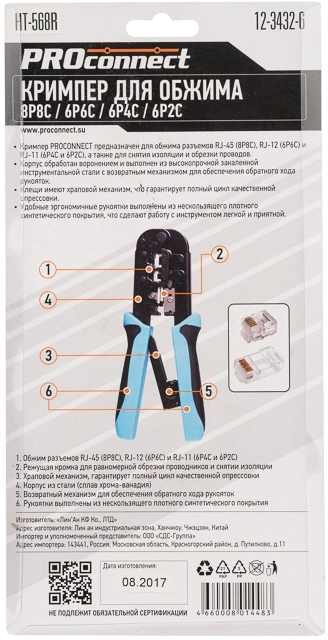 12-3432-6 для RJ-45/RJ-12/RJ-11 черный/синий