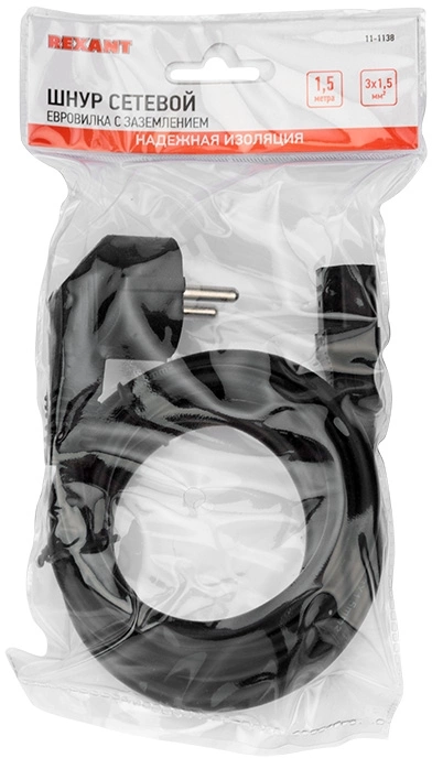 C13-Schuko проводник.:3x1.5мм2 1.5м 220В 10А черны...
