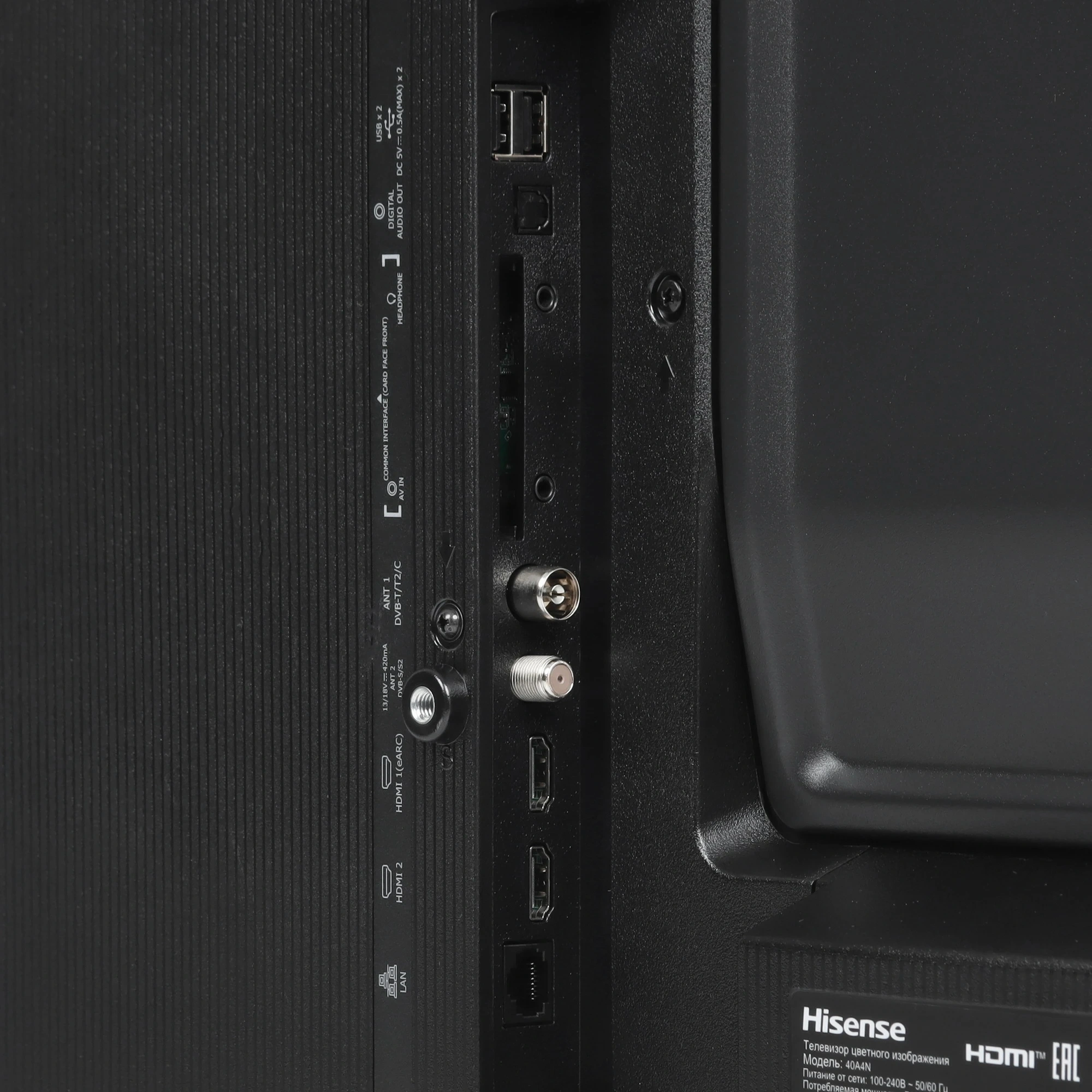 CI+/PCMCIA, HDMI, RJ-45 (Ethernet), USB Type-A, для наушников, композитный (видео)