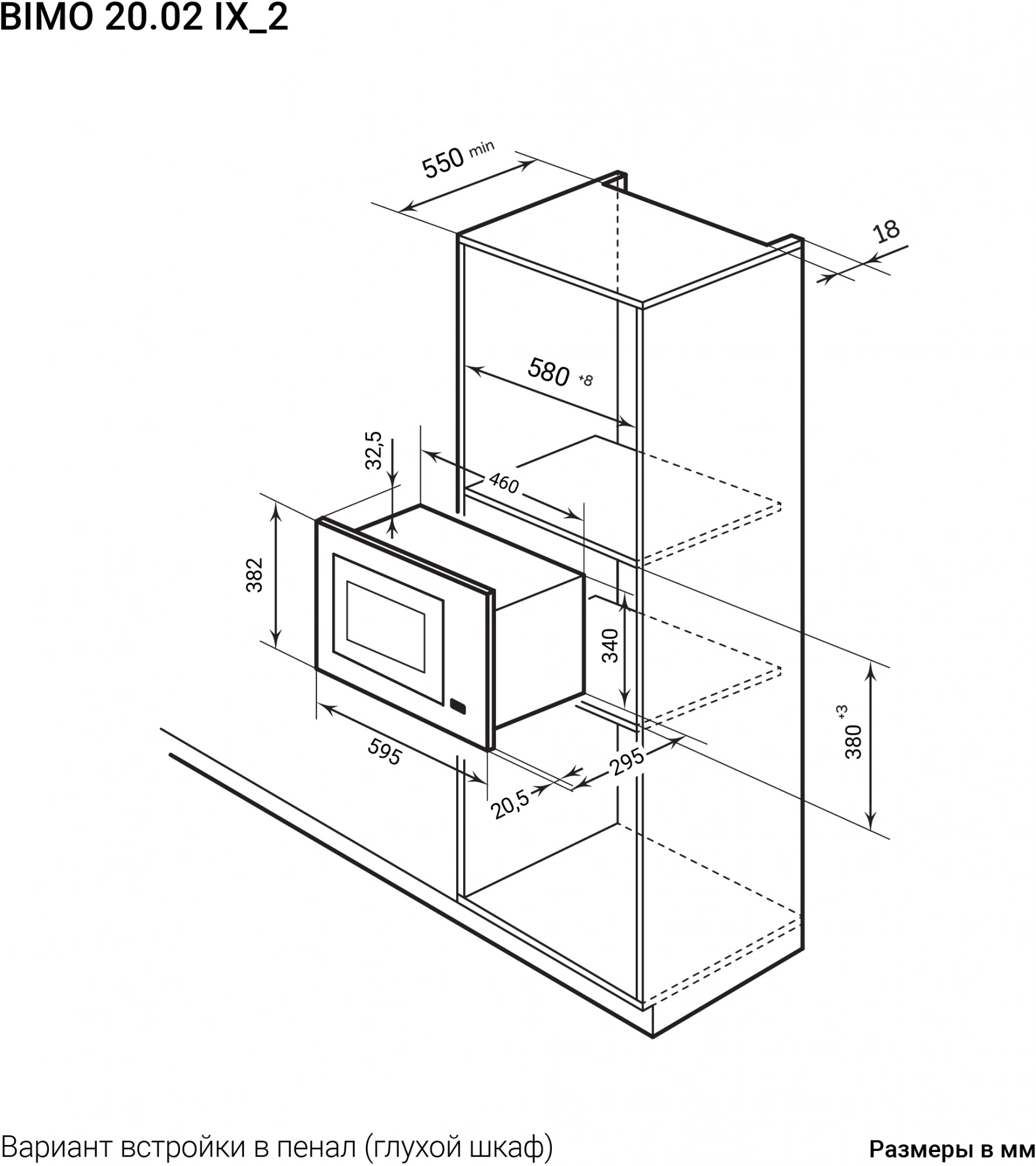20л. 700Вт нержавеющая сталь/черный (встраиваемая)