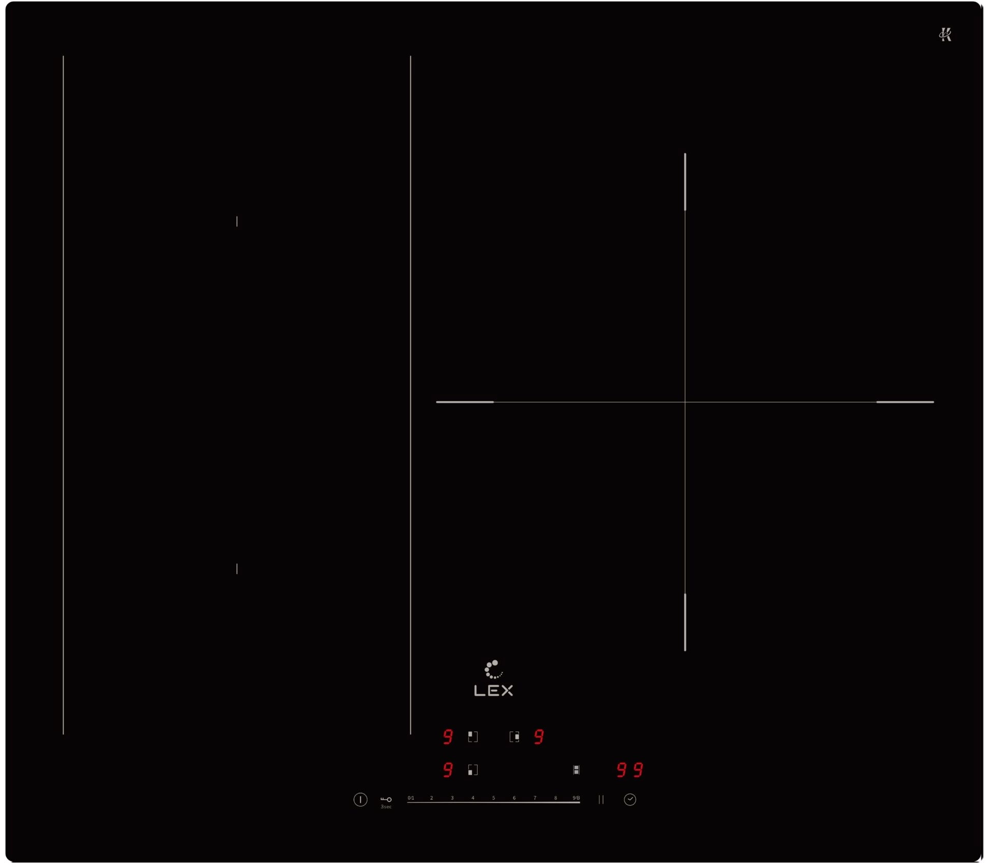 блокировка управления (защита от детей), защитное отключение, распознавание наличия посуды