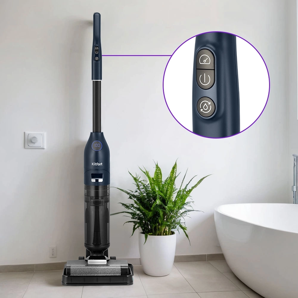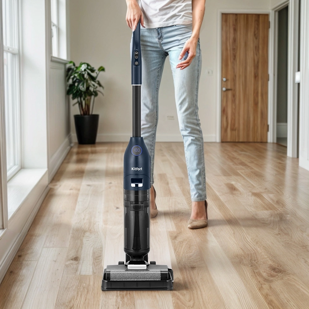 Беспроводной вертикальный моющий пылесос КТ-5248 очень удобен при проведении влажной уборки. Благодаря работе от аккумулятора во время использования пылесос не нужно включать в сеть и провода не будут мешаться под ногами.