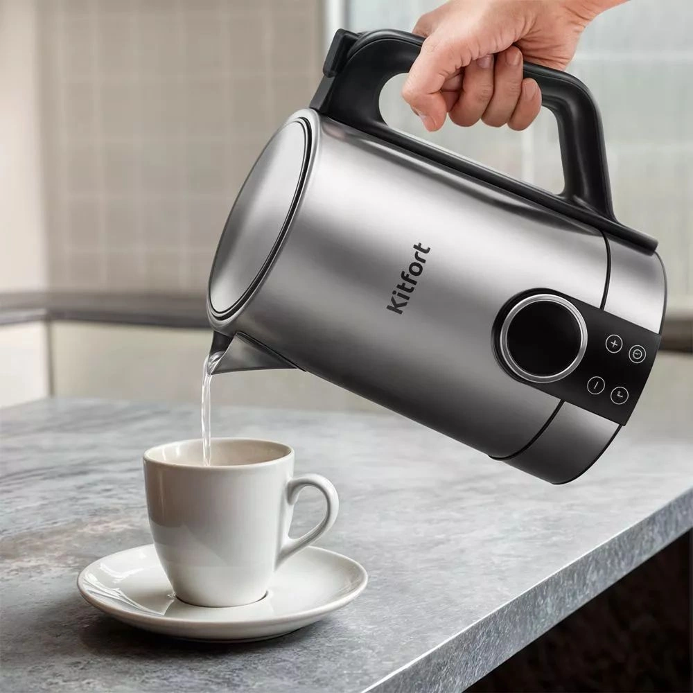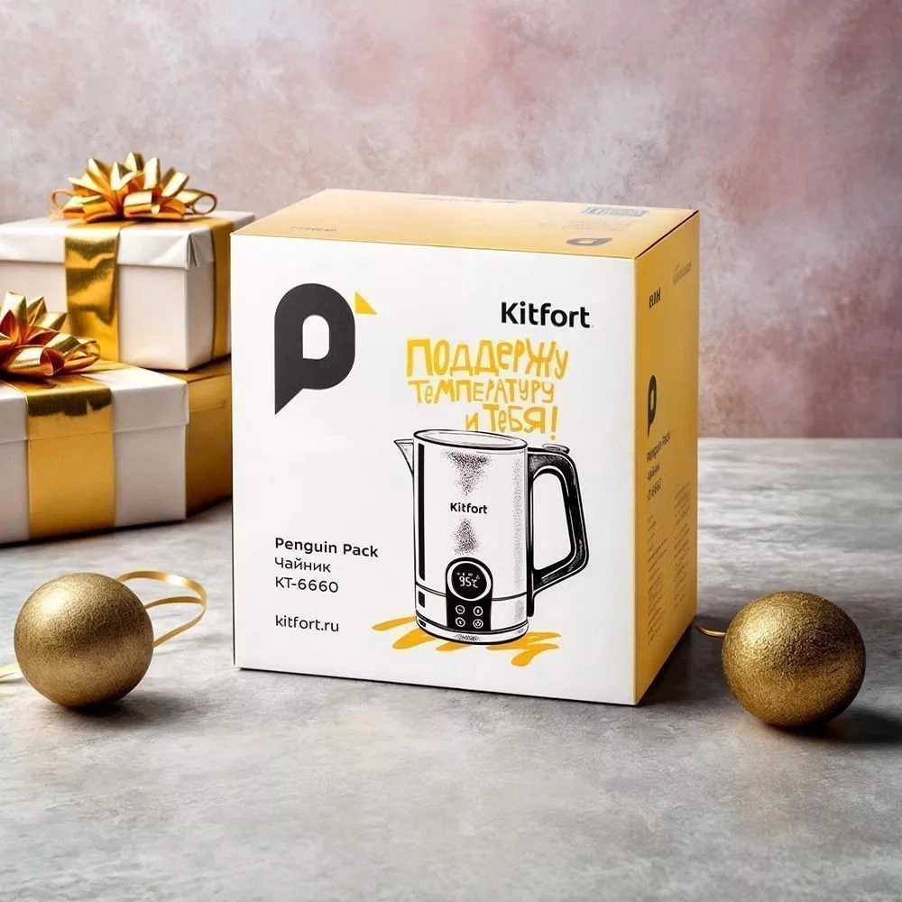 Чайник Kitfort КТ-6660 предназначен для кипячения воды дома, в офисе, на даче. Полный чайник закипает примерно за 5 минут. Чайник оснащён функцией поддержания температуры в течение 2 часов. Температура воды контролируется встроенным термодатчиком.