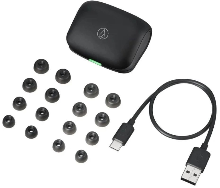 7 пар сменных амбушюр, зарядная станция-футляр, кабель USB Type-C (M) - USB Type-A (M)