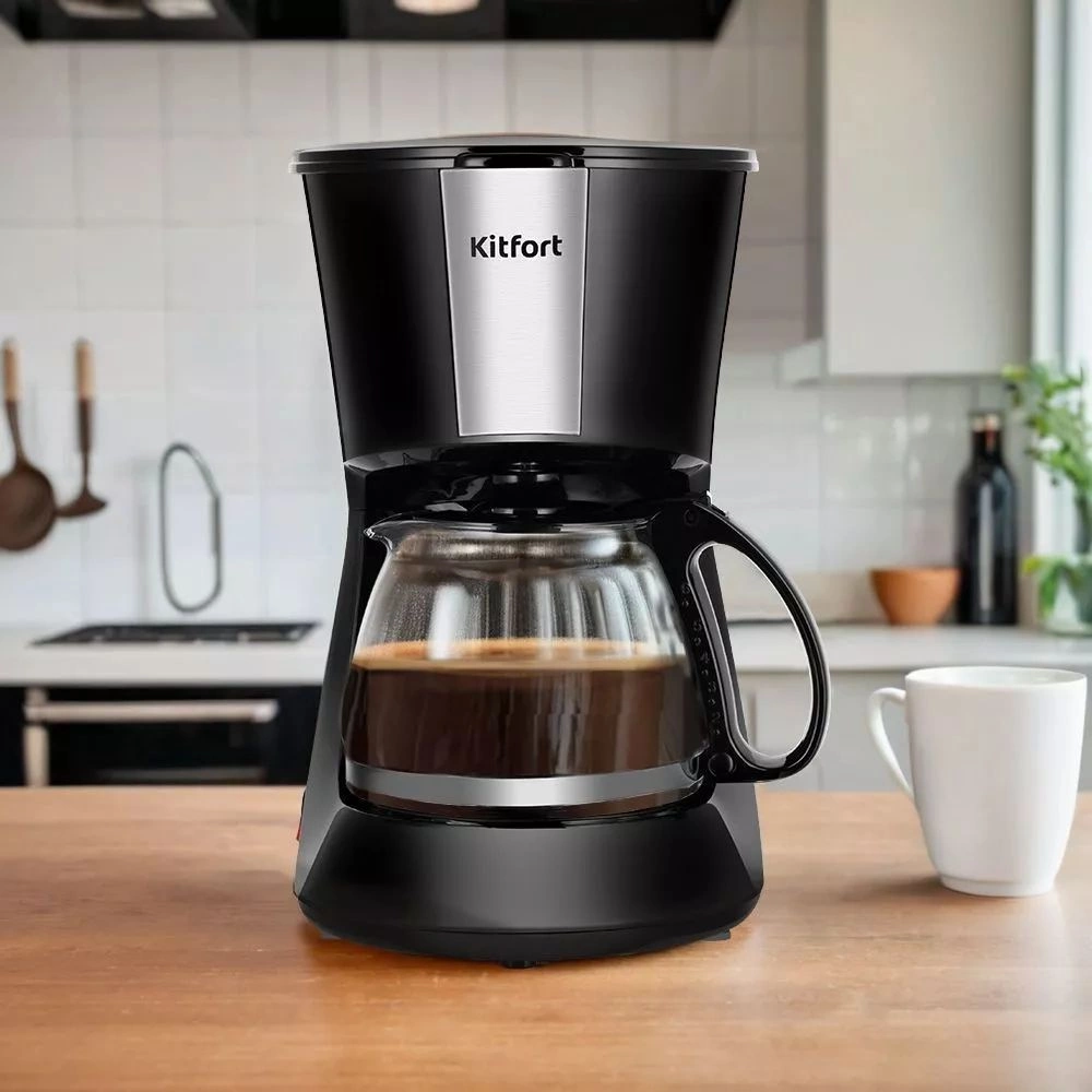 Капельная кофеварка КТ-7218 готовит ароматный чёрный кофе из молотого кофе. Управление кофеваркой очень простое и осуществляется при помощи одного переключателя. Прибор компактный и не займёт много места на вашей кухне.
