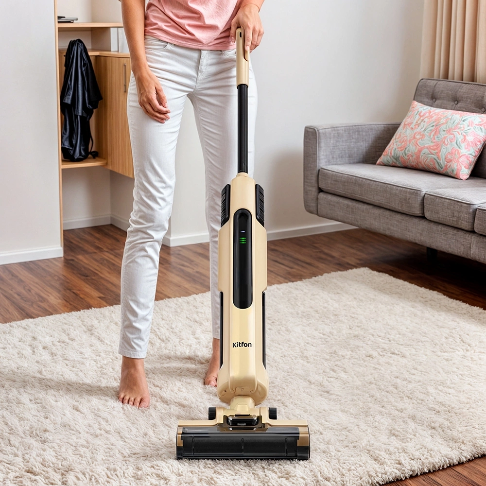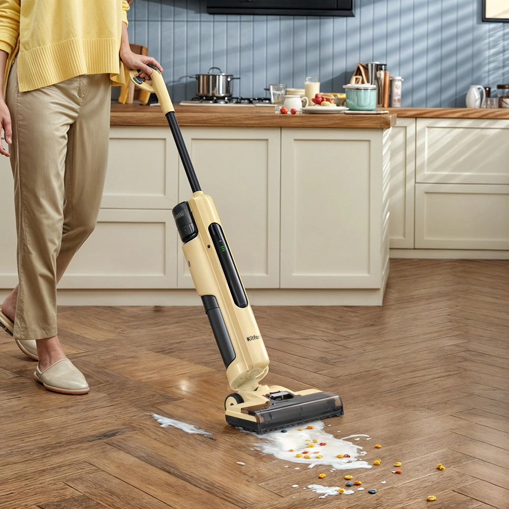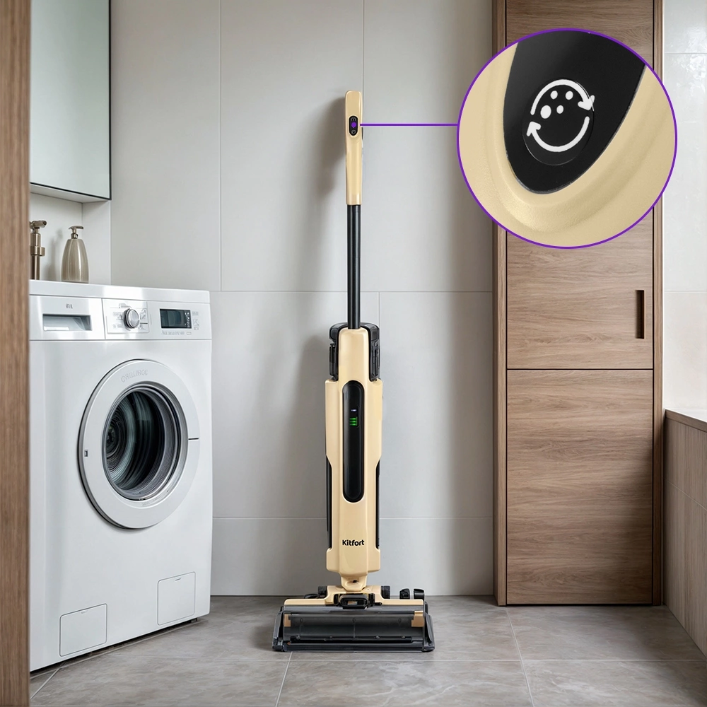 Беспроводной вертикальный моющий пылесос КТ-5214 очень удобен при проведении влажной уборки. Благодаря работе от аккумулятора во время использования пылесос не нужно включать в сеть и провода не будут мешаться под ногами.