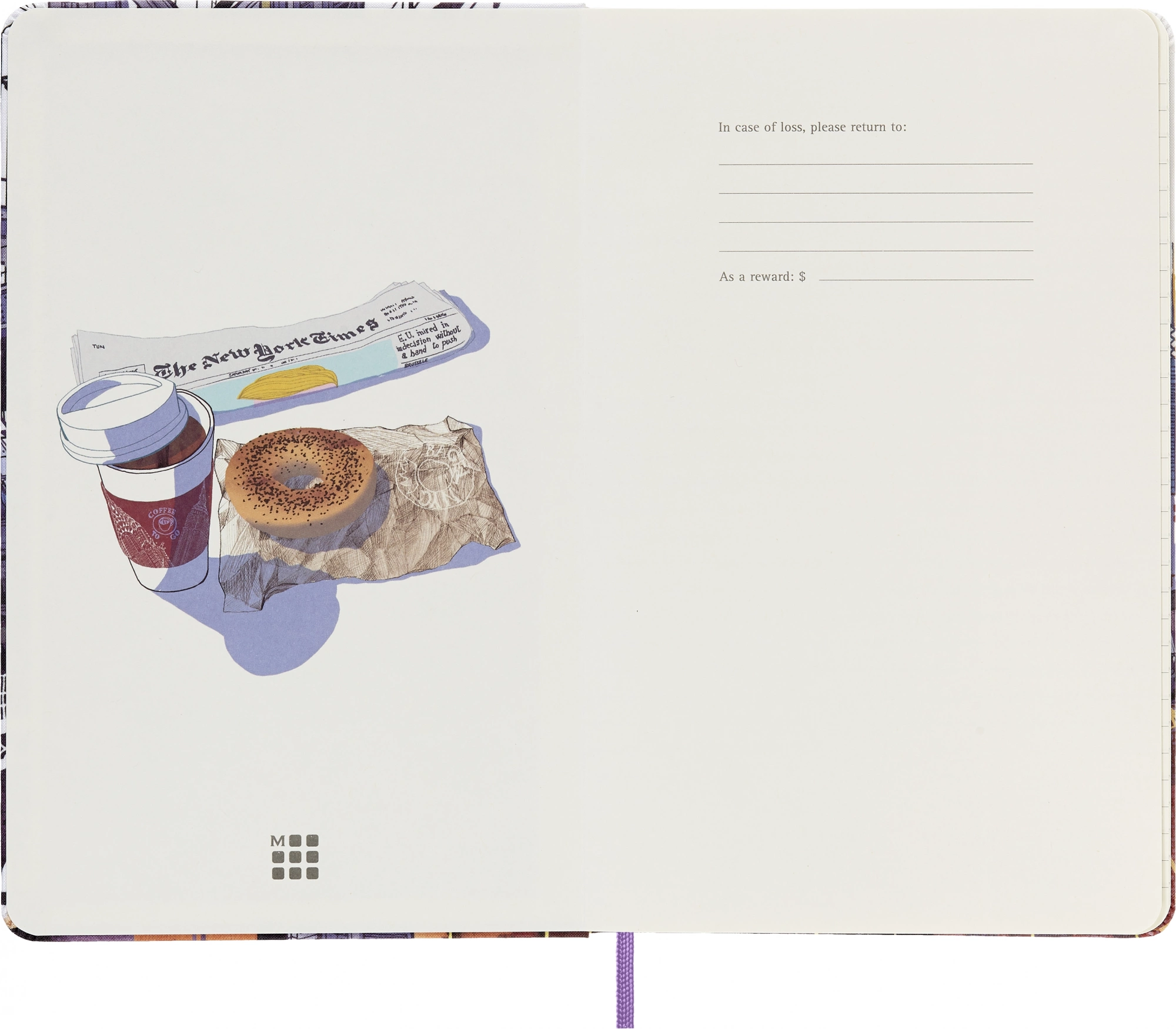 Для форзацев использован другой, но тоже знаковый подход - изображение города через его парки, людей и типичного завтрака в Манхэттене на ходу. Этот блокнот, выпущенный одновременно с публикацией книги иллюстраций Станги «I am New York», содержит яркую открытку с изображением всемирно известной Пятой авеню, простирающейся от парка Вашингтон-сквер.