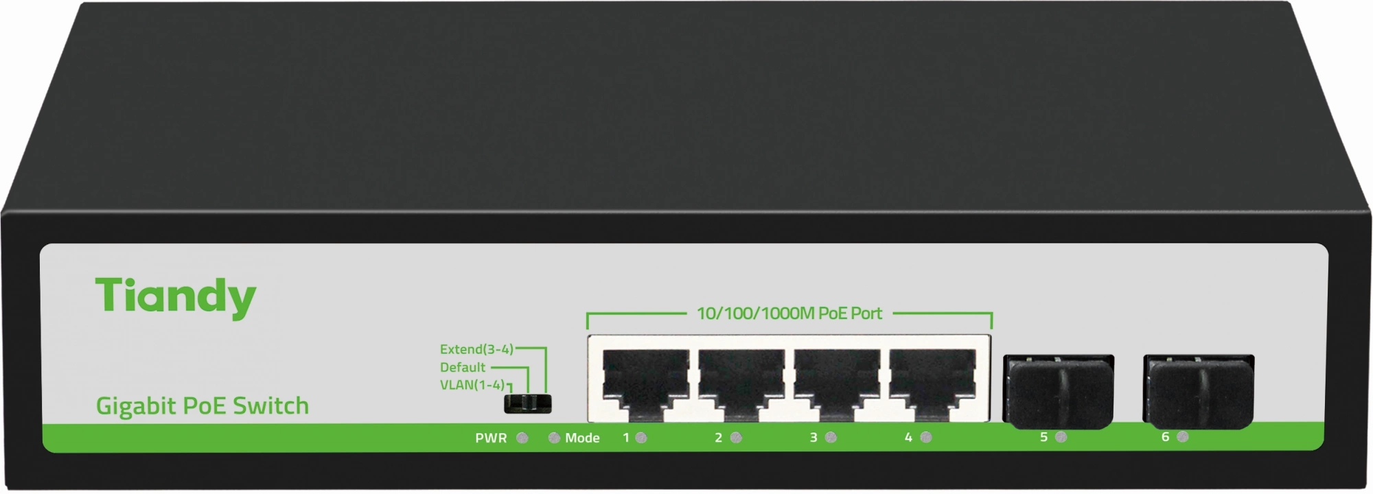 Poe коммутатор TC-P3S06 H/0402/AT/60 ·4*10/100/1000M PoE ports +2*1000M SFP PortComply with IEEE 802.3, IEEE 802.3u, IEEE802.3ab, IEEE802.3z standards, POE power: maximum 60W, watchdog