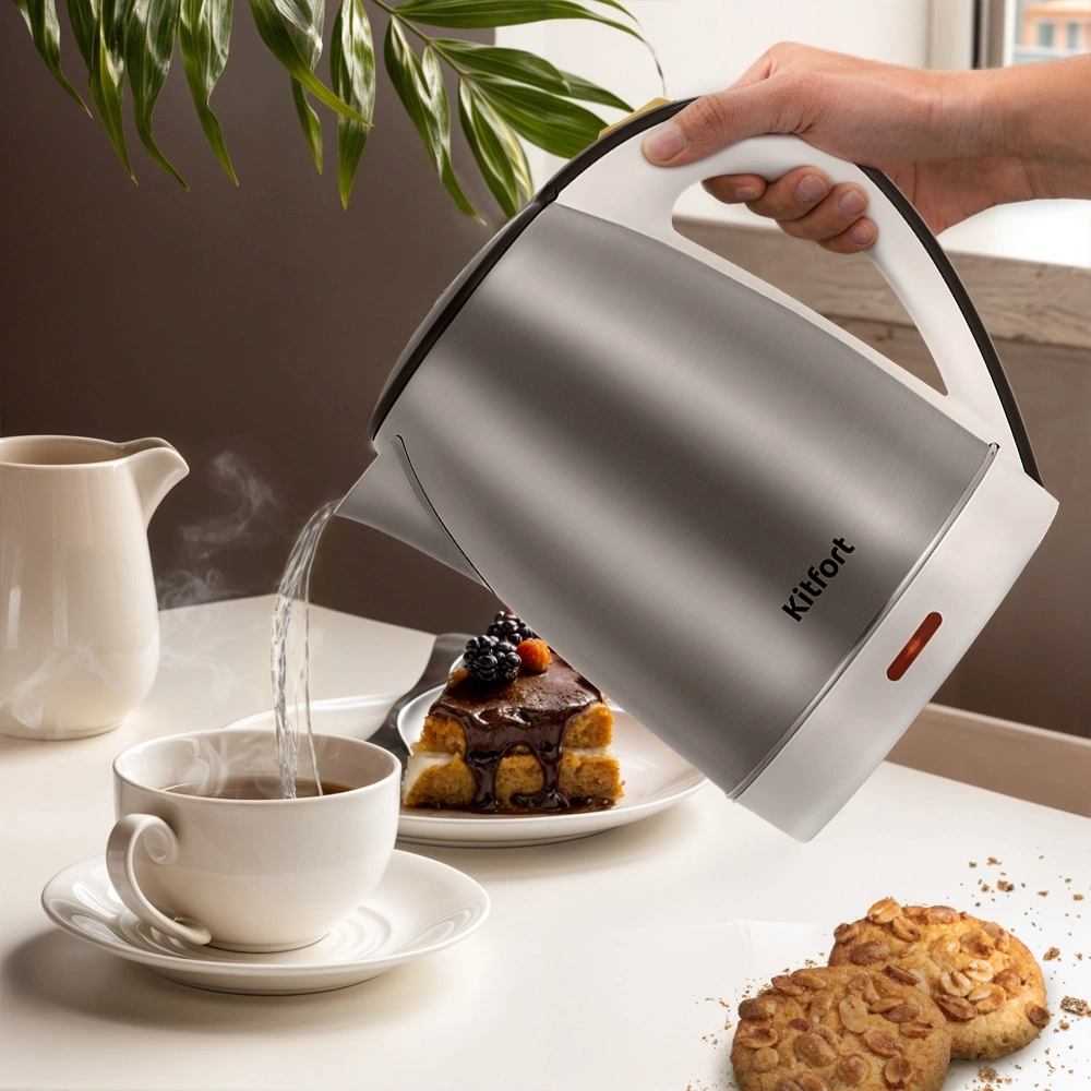 Ёмкость электрического чайника Kitfort KT-6554 составляет 1,7 л. Такого объёма хватит, чтобы угостить вкусным чаем семью и друзей.