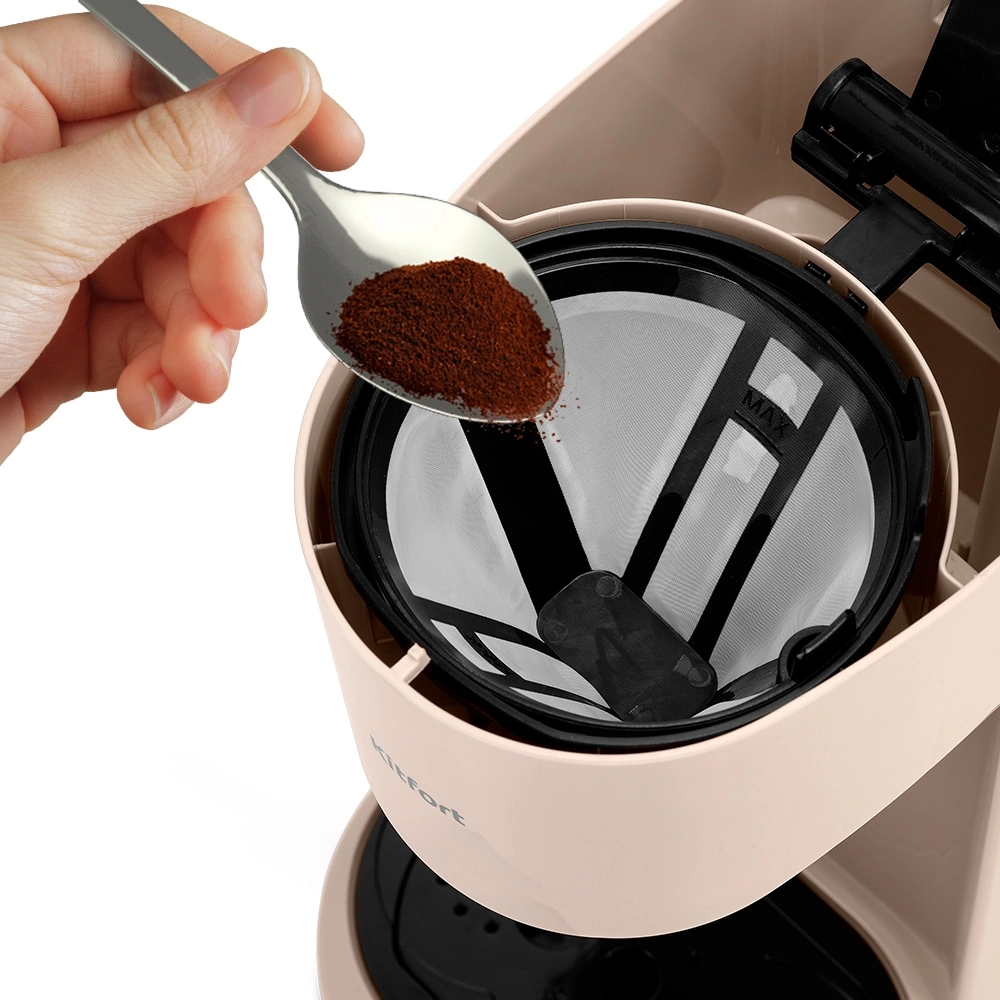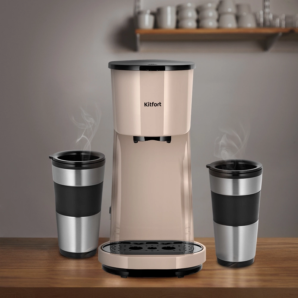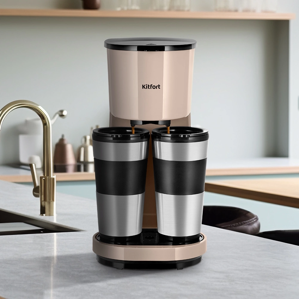 Капельная кофеварка КТ-7303 готовит ароматный чёрный кофе из молотого кофе одним нажатием кнопки. Прибор предназначен для приготовления двух порций кофе одновременно.