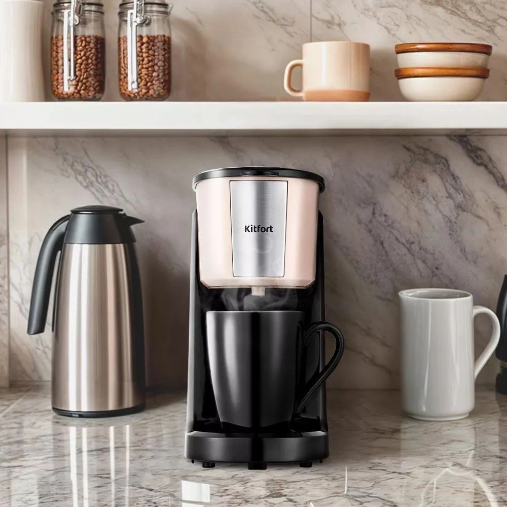 Капельная кофеварка Кіtfort КТ-7402 поможет приготовить ароматный кофе из молотого кофе. Она компактная, простая в использовании и идеально подойдёт для приготовления кофе в домашних условиях.
