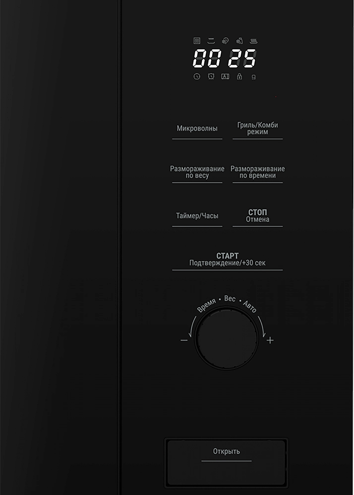размораживание по весу, режим микроволны+гриль, ускоренный разогрев