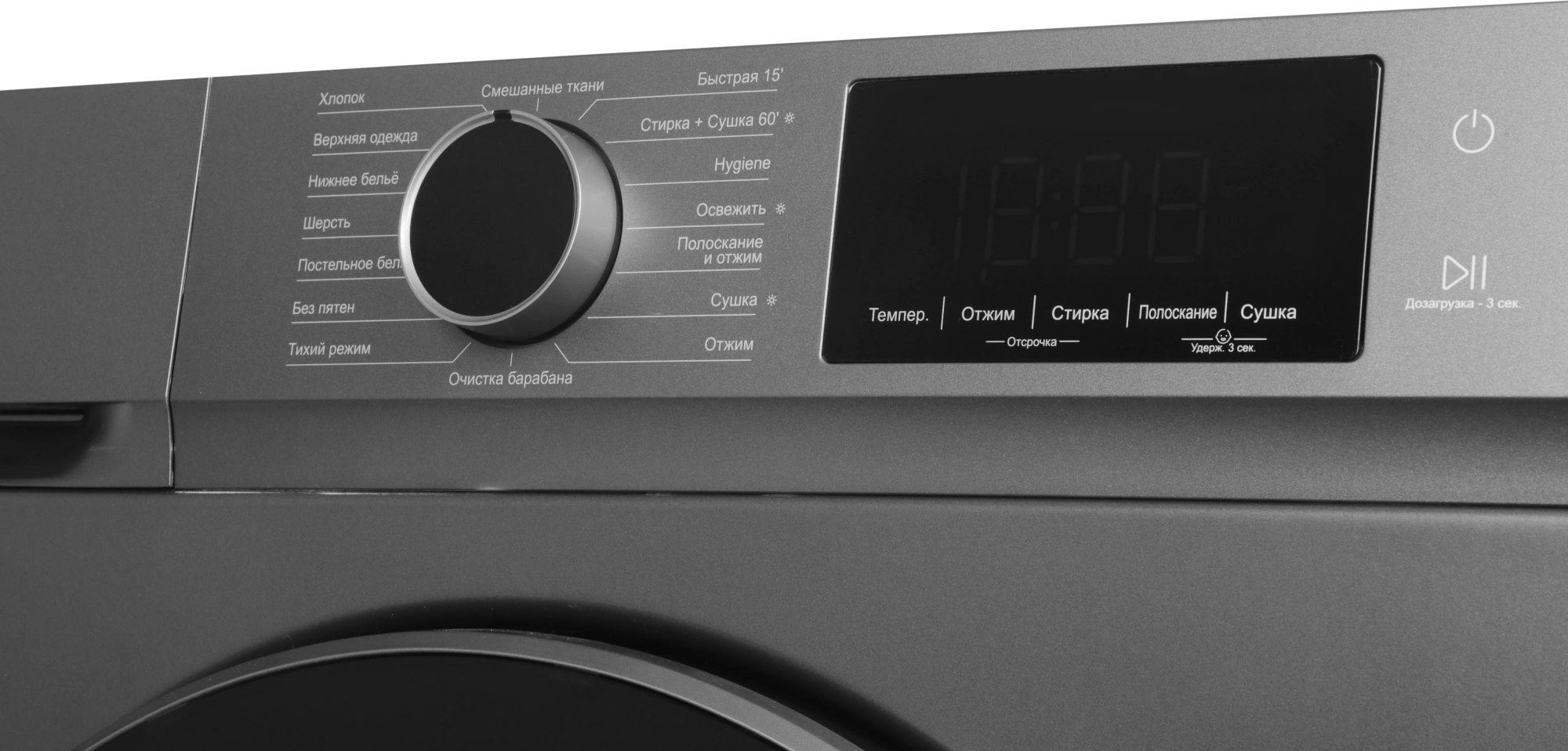 Смешанные ткани. Хлопок. Верхняя одежда. Нижнее белье. Шерсть. Постельное белье. Без пятен. Тихий режим. Очистка барабана. Отжим. Сушка. Полоскание и отжим. Освежить. Hygiene. Стирка+Сушка. Быстрая.