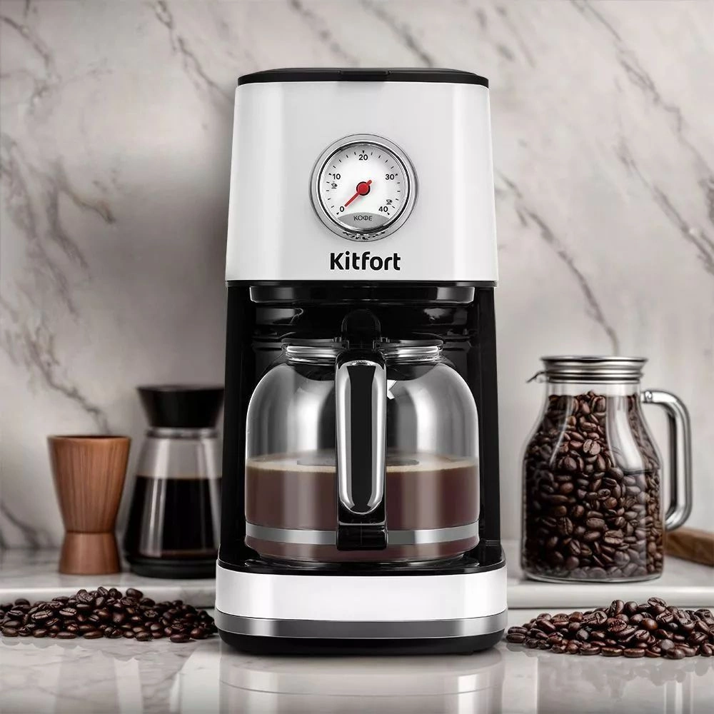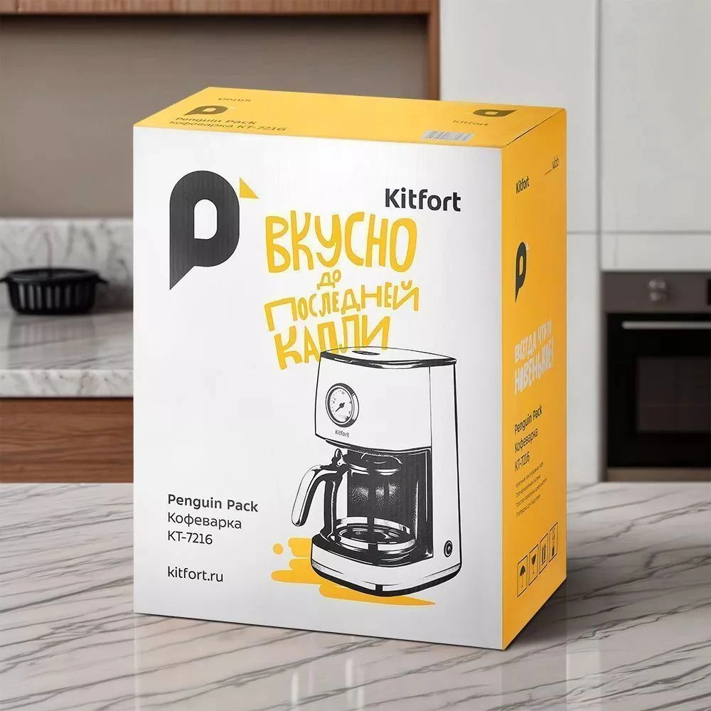 Капельная кофеварка КТ-7216 готовит ароматный чёрный кофе из молотого кофе. Она компактная и простая в использовании. Кофеварка идеально подойдёт для приготовления кофе в домашних условиях или в офисе.