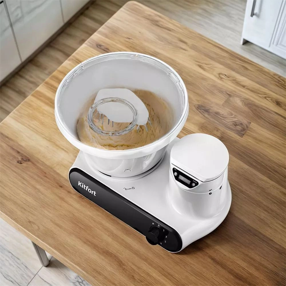 Тестомесильная машина КТ-3478 поможет вам замесить крутое тесто для пельменей, слоёное тесто для булочек, а также жидкое тесто для блинов. Насадка для замешивания теста вращается вокруг своей оси, что обеспечивает идеальное качество смешивания без комков